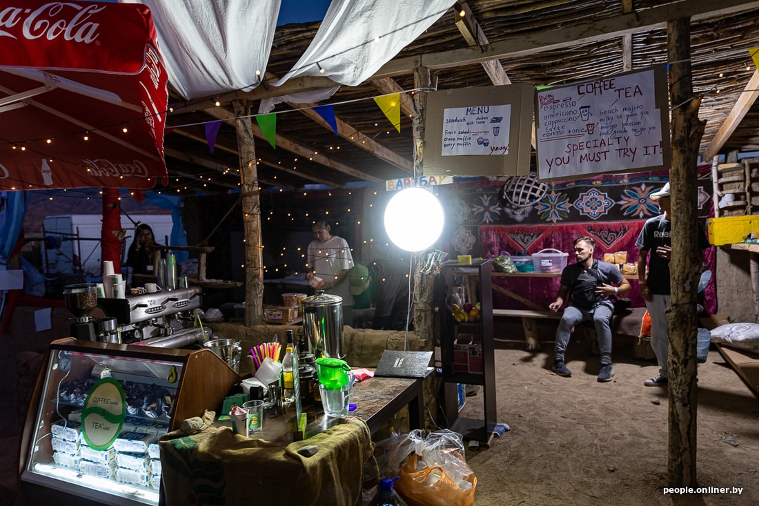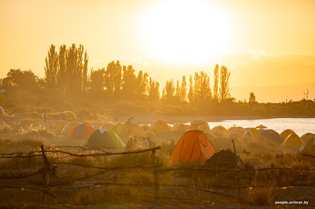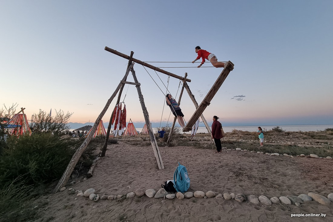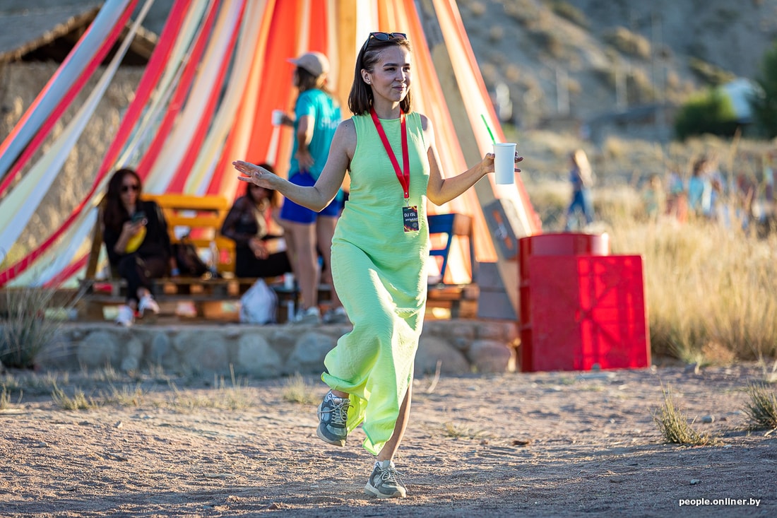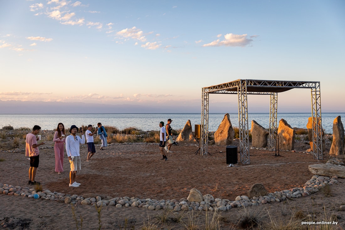 Делать на фестивале фотозоны не имеет большого смысла, потому что весь Kol Fest и есть одна огромная фотозона с удивительными пейзажами. Здесь же — пляжи, где местные и туристы спасаются от сорокаградусной жары и прыгают в холодную воду Иссык-Куля. Кажется, именно по этой причине днем под сценой практически нет людей: все они приходят в себя после ночных рейвов и охлаждаются перед очередной тусовочной ночью.