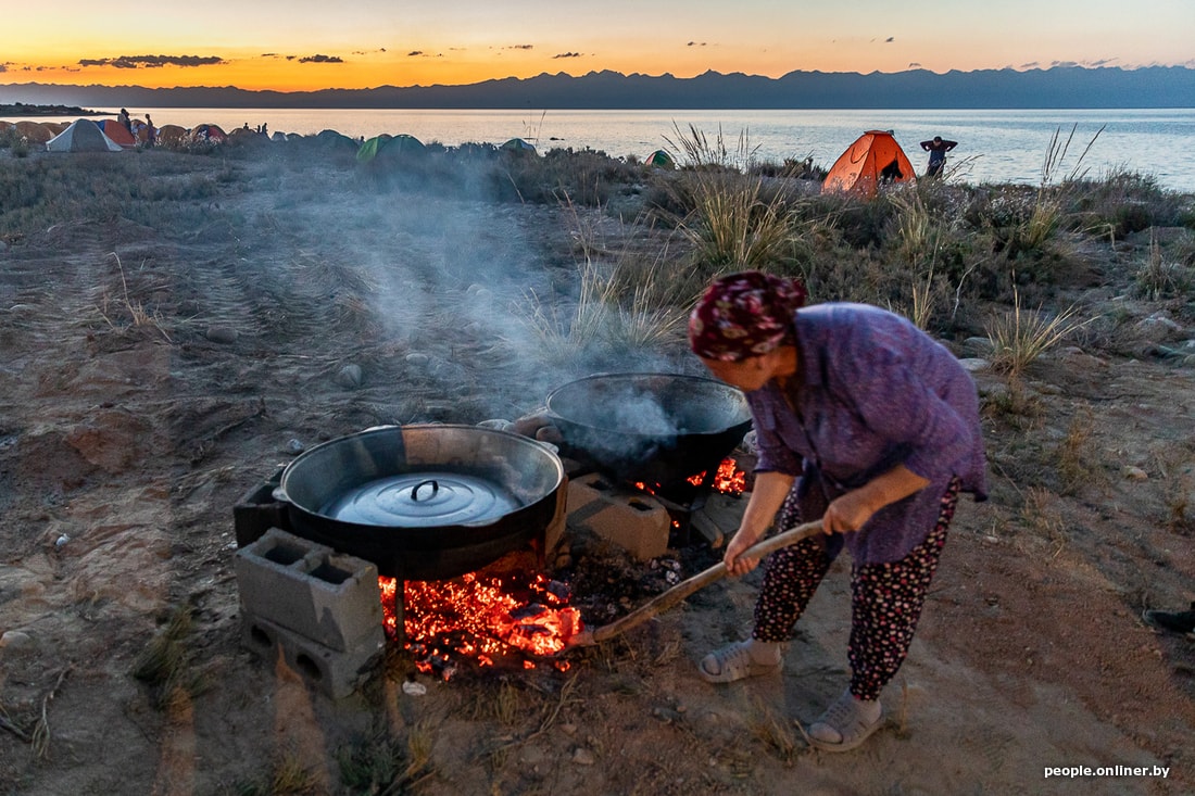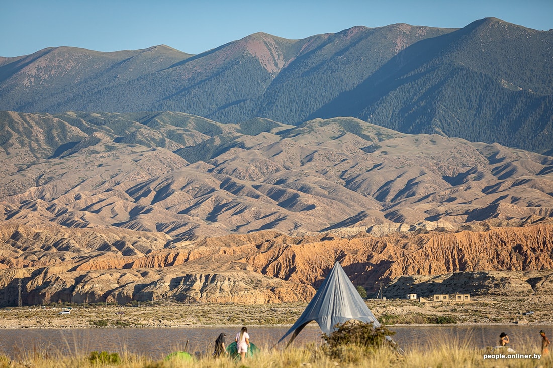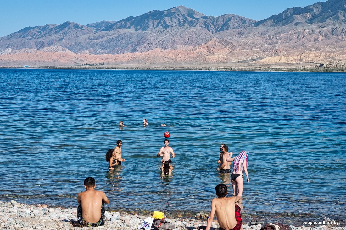 «Мы сегодня свободны. Под этим небом. Свободны каждый день. Свободны сегодня, потому вчера уже было, а завтра еще не наступило. Живи сейчас! Сегодняшний день не повторится никогда!» — выкрикивает в микрофон заклинание диджей из Бишкека, пытаясь расшевелить тусовщиков, размякших от суровой жары. Мы находимся в удивительном месте. С одной стороны — белоснежные пики Тянь-Шаня, с другой — обжигающее прохладой, кристально чистое горное озеро Иссык-Куль. Место, в котором было здорово оказаться и без каких-то дополнительных опций: дикий южный берег, который выбирают в основном туристы, бегущие от комфорта и богатых пансионатов, пыльная степь и предельная аутентика — если никогда не бывали в Средней Азии, то это идеальный вариант для знакомства с регионом.