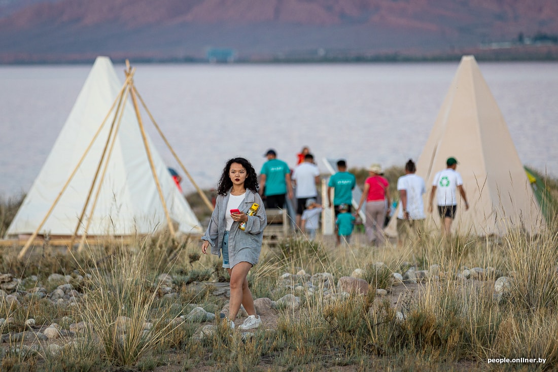 Половина всех посетителей Kol Fest — это туристы из разных стран. География впечатляет: здесь можно встретить ленивых французов, которые устроились в тенечке и скороговоркой обсуждают план на ближайший вечер; посла Великобритании, который вместе с семьей остановился в юрте и сейчас лениво потягивает пиво, слушая очередной диджейский сет; его соотечественников-англичан, которые, помятые, выползают из палатки и тянутся к бару лечиться после ночных приключений; гости из Индии, которые с удивлением рассматривают пейзажи и знакомятся с местными.