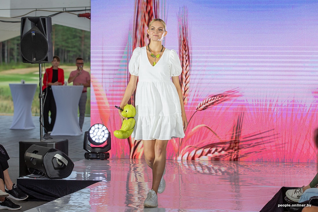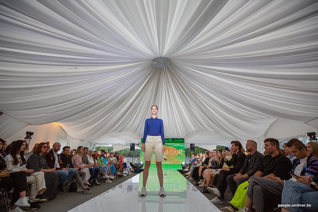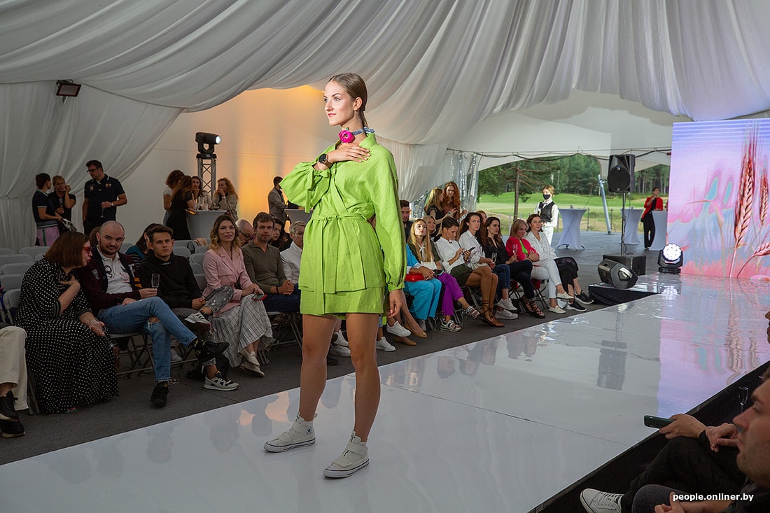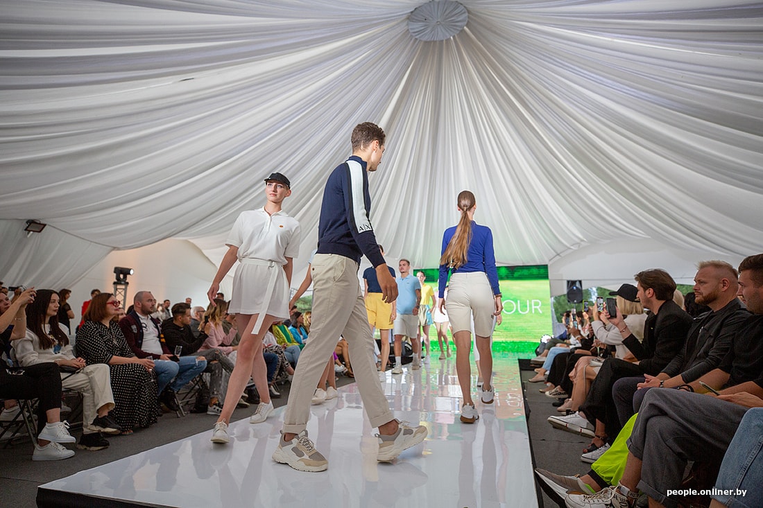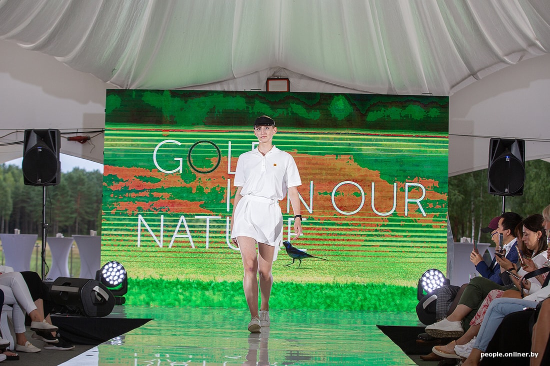 Любящий коллабиться с различными компания проект в этот раз провел шоу на территории минского гольф-клуба в Колодищах. Пока игроки в майках-поло и обтягивающих брюках чинно гоняли мячики на зеленых полях, модники пытались разобраться в запутанных окрестностях жилого комплекса «Зеленая гавань».