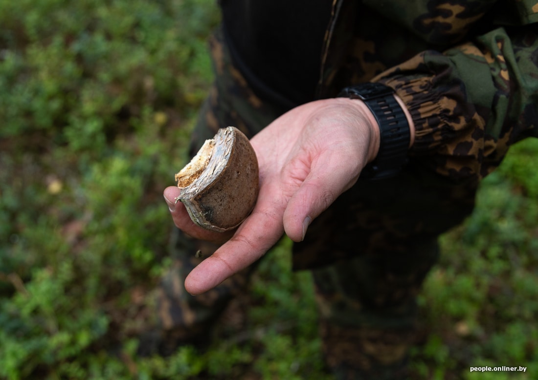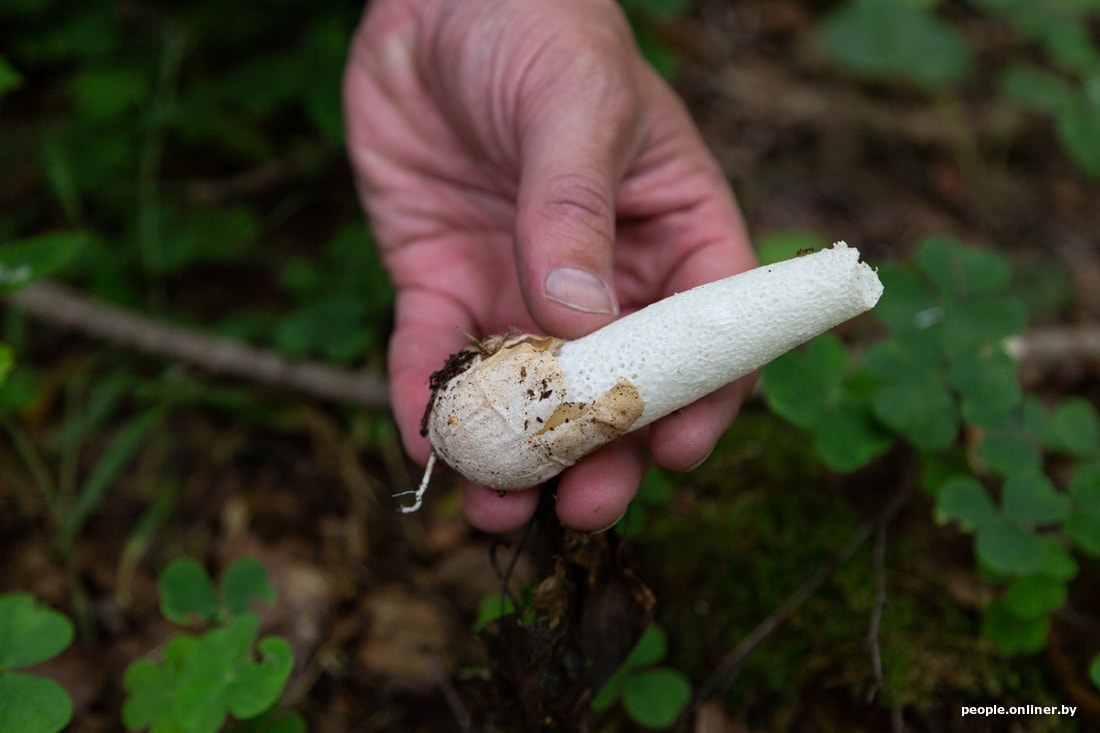 До поездки я ничего не ел, а в пуще употребил два-три лесных ореха (вполне себе спелых), 200 граммов сырых лисичек (они немного горчат, но ничего), заячью капусту (по вкусу напоминает щавель, кислит, ее только жевал), несколько жменей черники и брусники. Организм переварил все без последствий. Также мы встретили медянку, но есть 10-сантиметровую змею на троих взрослых парней — пусть лучше поживет. Еще по запаху нашли гриб веселку (воняет мощнее болота) — клад для любителей народной медицины, но его уже кто-то подъел до нас.