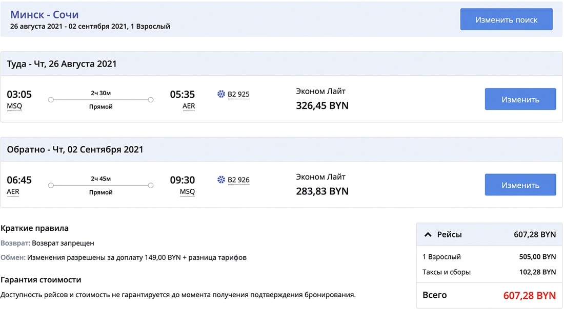 Вот как выглядят цены у «Белавиа» на конец августа — начало сентября.