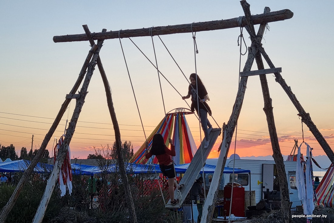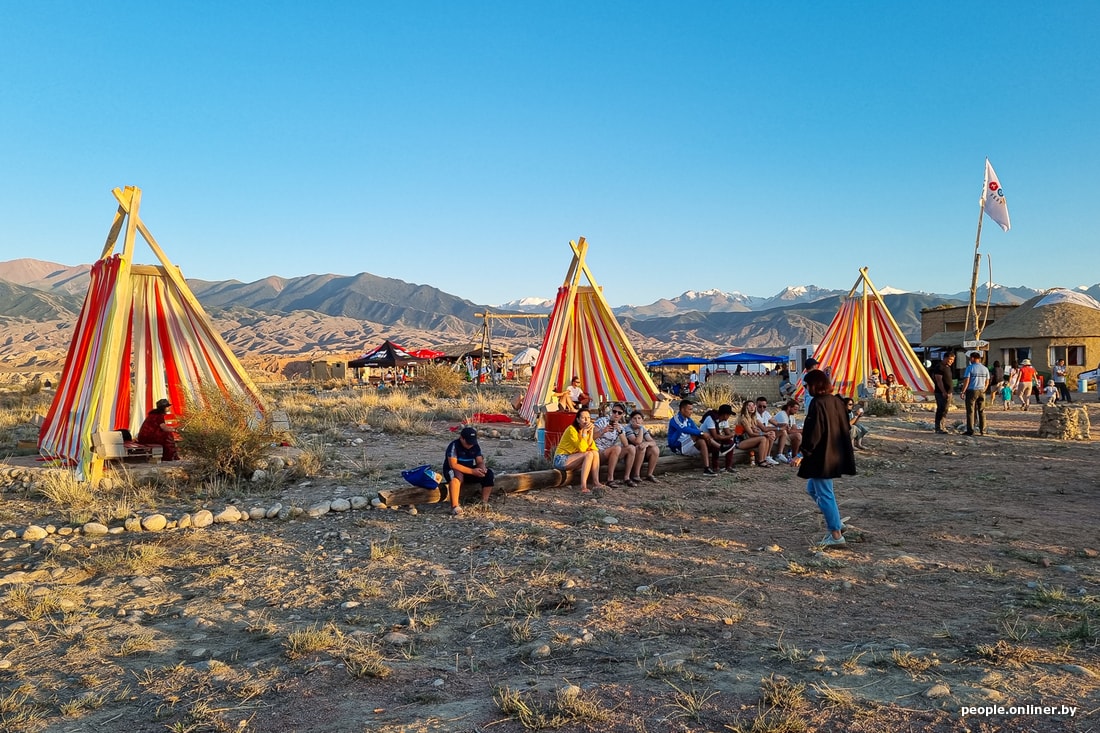 С фестиваля людей развозят таксисты — местные жители, которые готовы домчать до гостевого дома за фиксированную стоимость: 150 сомов — что-то около $2. Попробуйте проехать хотя бы 100 метров за такие деньги с фестиваля в Беларуси. Еще по расписанию ходят микроавтобусы, и организаторы всех просят пользоваться этим транспортом и не садиться пьяными за руль.