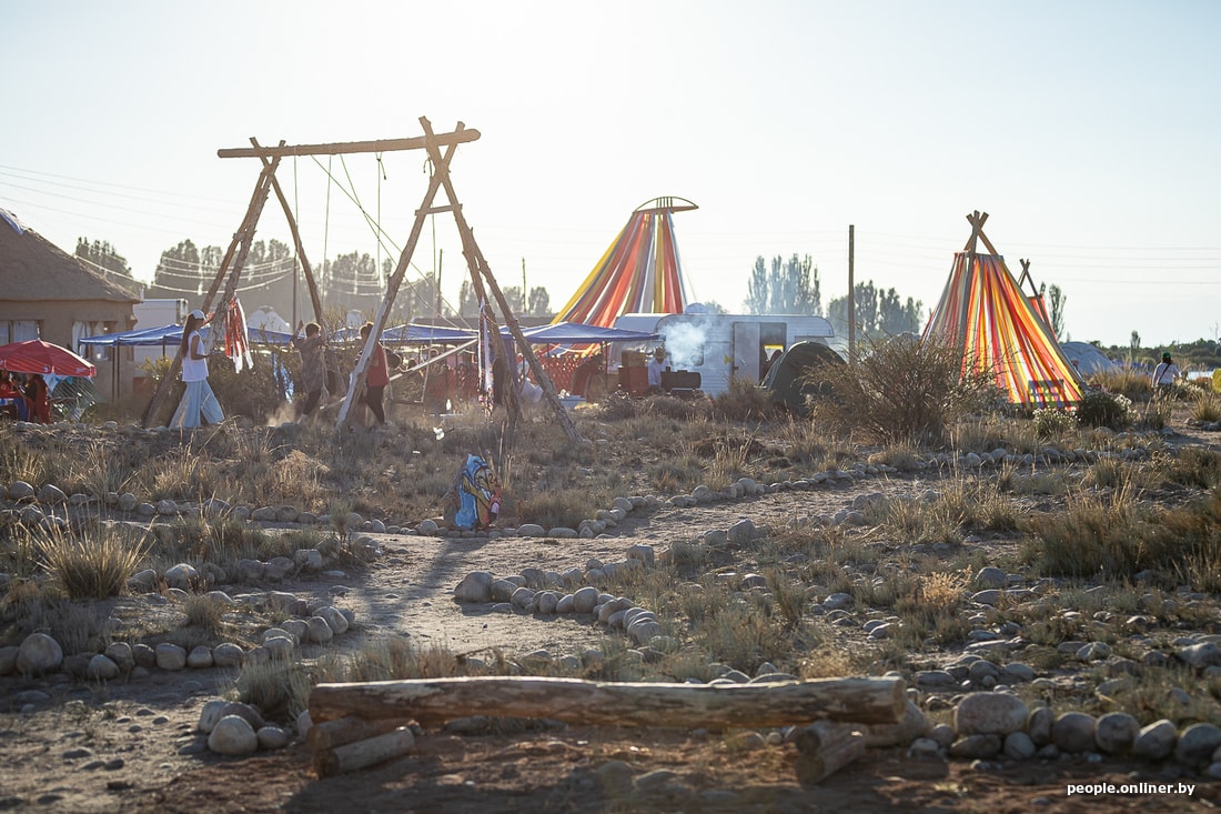 Вообще коммуникация с госорганами проходят по принятым здесь законам и завершается масштабным застольем для людей с борсетками в одном из фестивальных шатров. Бар в этом году организаторы сделали своими силами: закупили алкоголь, поставили холодильники и пригласили барменов работать за гонорар. Было сложно: нужно было просчитать объемы, чтобы фестивальная публика вдруг не осталась среди степи без допингов. Но вроде бы все оказались довольны.