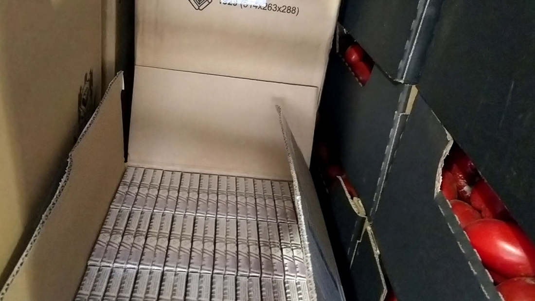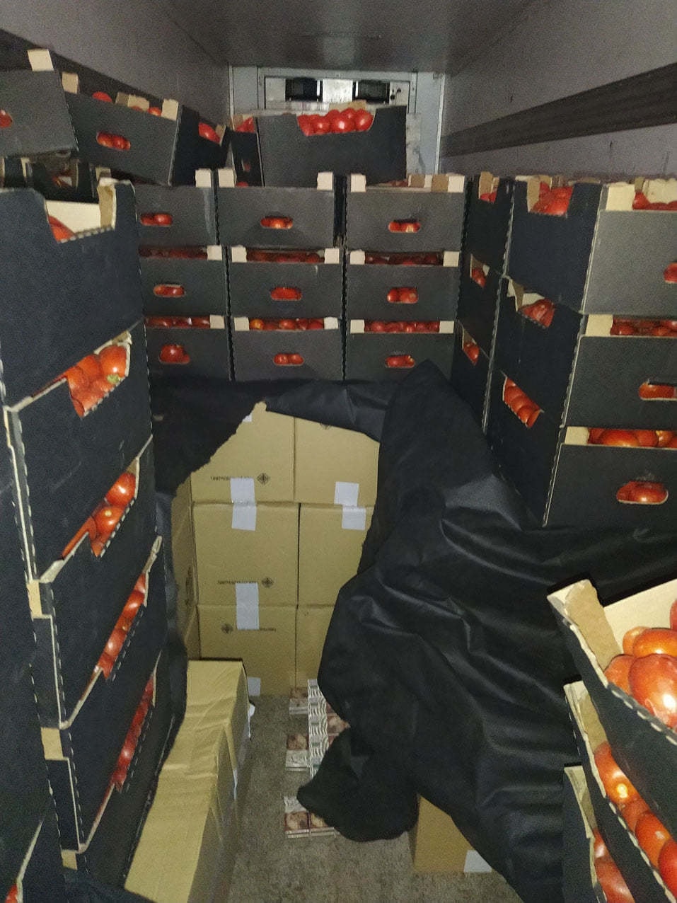 Литовские пограничные службы продолжают регулярно отчитываться о том, что приехало со стороны Беларуси. На этот раз нашли в двух фурах большую партию сигарет. Оценили в 1,2 млн евро. Коробки с гродненскими сигаретами ехали под прикрытием помидоров и повидла.