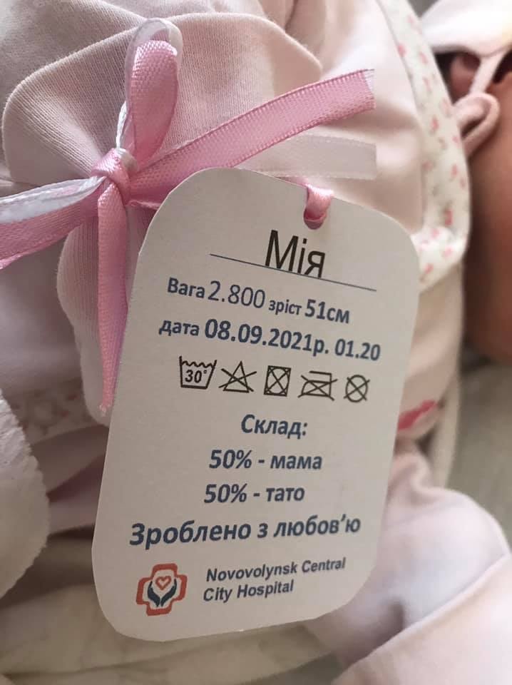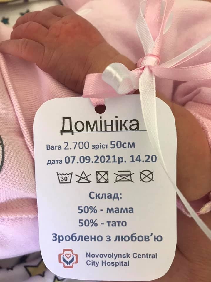 В Нововолынске творчески подошли к оформлению младенцев, которые здесь рождаются. Местная больница представила симпатичную бирку, которую теперь привязывают к ручке ребенка при выписке из роддома. Оформили в виде магазинного ярлыка, на котором, кроме веса и роста, указывается состав (50% папа, 50% мама) и некоторые ограничения при использовании (нельзя гладить утюгом, отжимать в стиральной машине и пр.). Оказывается, понравилось не всем — в интернете нашлось место для холивара. А как вам идея?