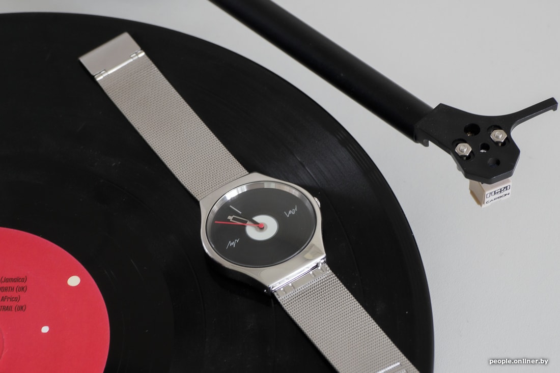 Коллекция Mustart 2021. Лимитированная модель «Винил». Автор проекта Денис Шереметьев вдохновился самым эстетичным звуковым носителем — виниловой пластинкой, которая снова становится популярной. В модели циферблат имитирует грампластинку, а часовая стрелка — тонарм, благодаря которому проигрыватель воспроизводит музыку.