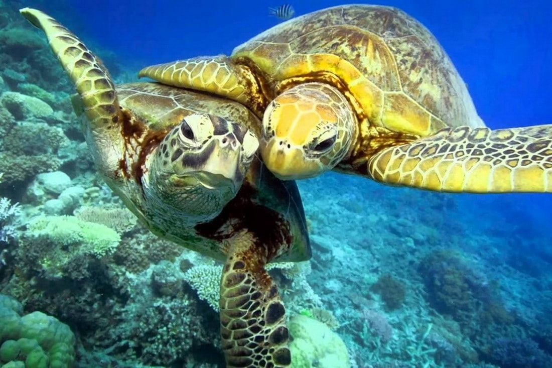 Даем ориентир. Надо протиснуться между булькающими на мелководье немцами, миновать роющего яму ската и отплыть на сто-двести метров в сторону Синайского полуострова. Тогда увидишь на дне смутные движущиеся очертания. С криками греби к ним. Это три огромные черепахи, щиплют травку.