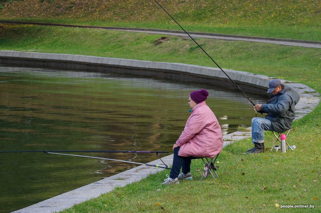 Парк Победы — годное место для долгих прогулок, свиданий, красивых фото с листьями, прогулок с детьми, собаками. И даже для рыбаков, которые, похоже, здесь постигли дзен.