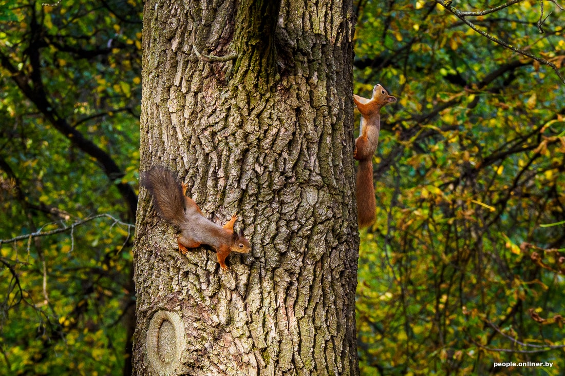 Из парка Горького можно плавно переместиться в парк Янки Купалы: через проспект возле многострадальных ваз, которые прошли «цветотерапию», или вдоль Свислочи под мостом (только не наткнитесь на велосипедистов). Белки тут тоже танцуют.