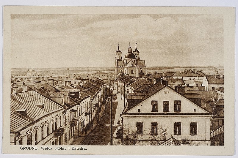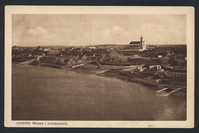 Пачнём, бадай, з любага для турыстаў і беларусаў Гродна. Фарны касцёл, гандаль і, натуральна, Каложа. Глядзім, як яны выглядалі стагоддзе таму.