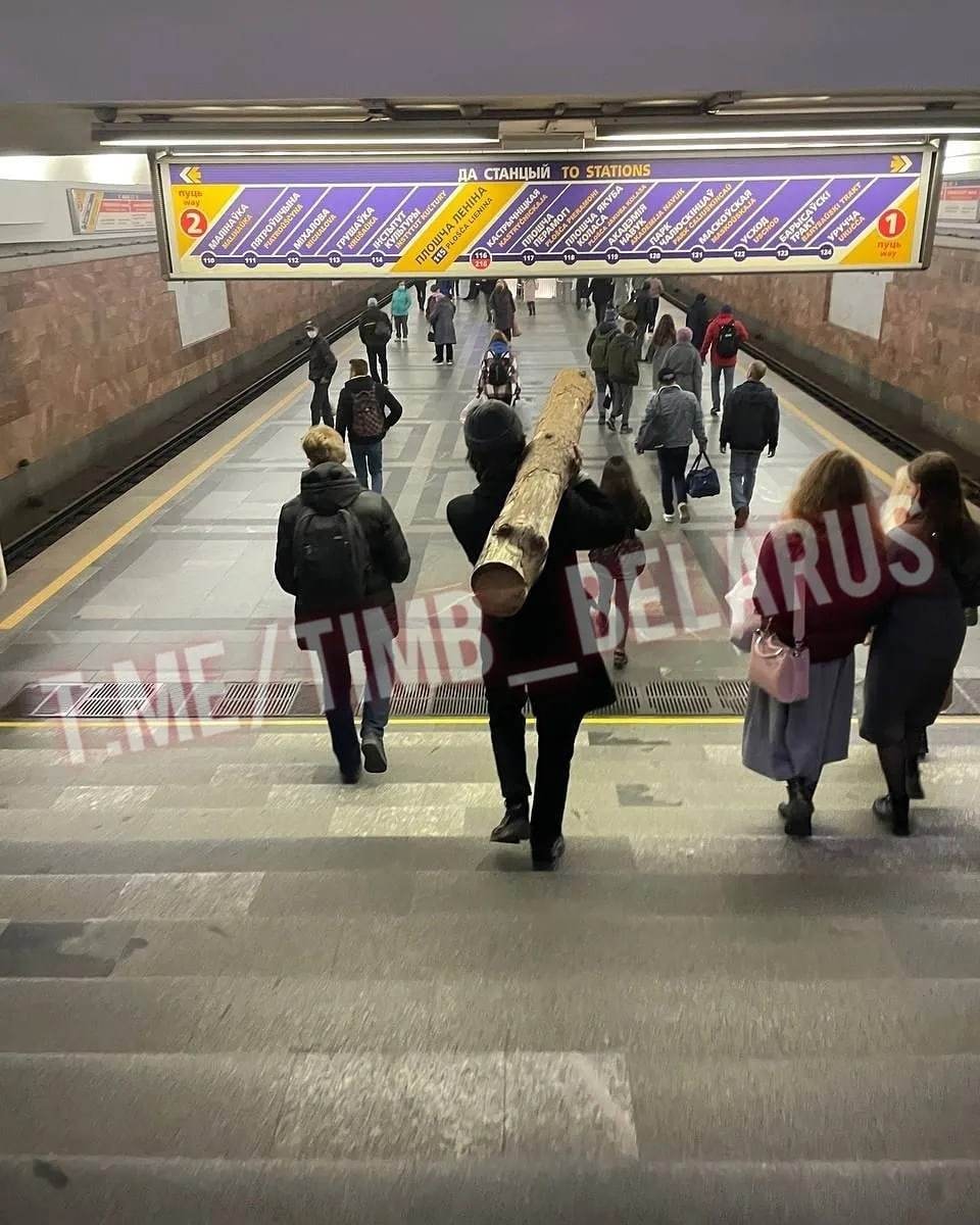 В сети гуляют снимки, на которых парень идет по минскому метро с большим бревном, как будто так и надо. Все происходит на станции «Площадь Ленина». А что еще можно увидеть в минской подземке?
