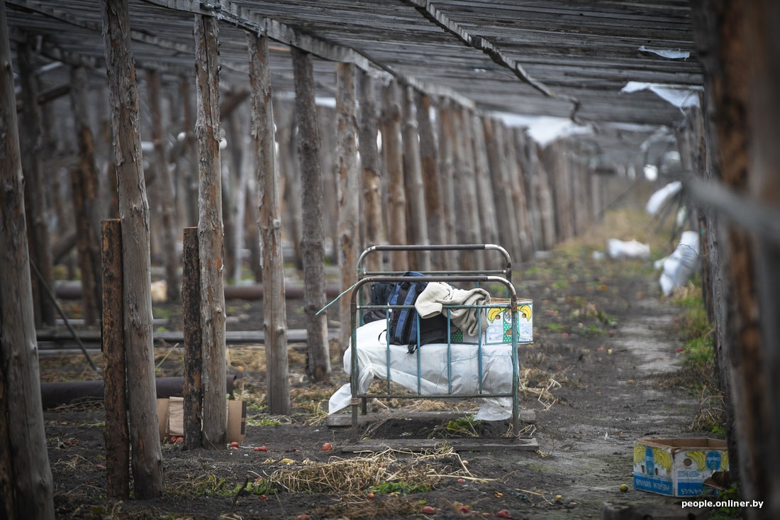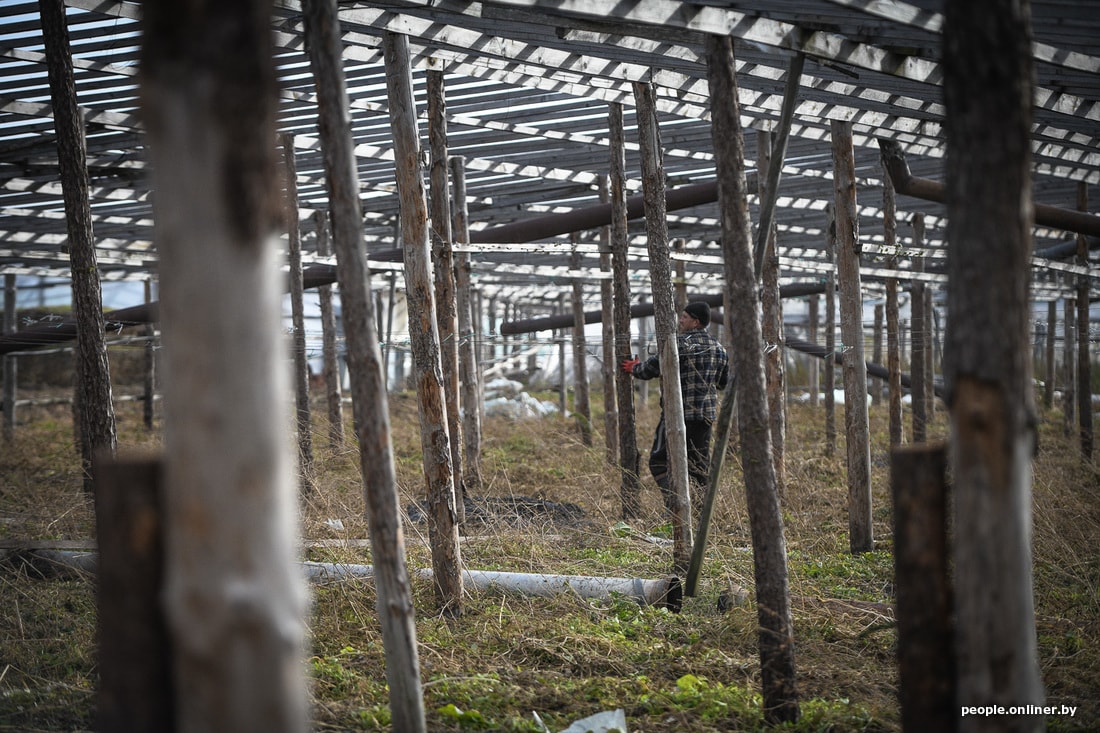 За жилой территорией через канаву находятся теплицы, но в этом году одной будет меньше. Сергей и Ольга разбирают огромный парник, который кормил их семь лет. Таким бизнесом заниматься они больше не планируют: дрова дорогие. Спрашиваем о коронавирусе и вакцинации, но ответ вы наверняка уже знаете: «Уже, наверное, болели, вакцинироваться боимся, не изучена она еще».