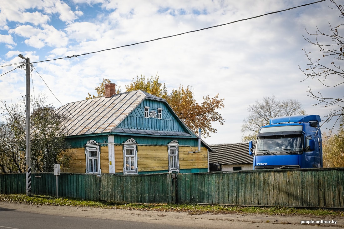 Дорога, ведущая в населенный пункт, даже по столичным меркам оживленная — люди заготавливают дрова, из кабины ЗИЛа видны лица четырех персонажей, им еще предстоит разгрузка дорогостоящего дерева. Кто-то мешки капусты везет на ближайшие рынки или торгует плодами земли со скамейки у двора. Открывается агрогородок огромными фермерскими теплицами, чего там только не растет. Повторять в очередной раз про «огуречную столицу» с моей стороны — кощунство. Вместо этого — рубрика «Ольшаны в одном абзаце».