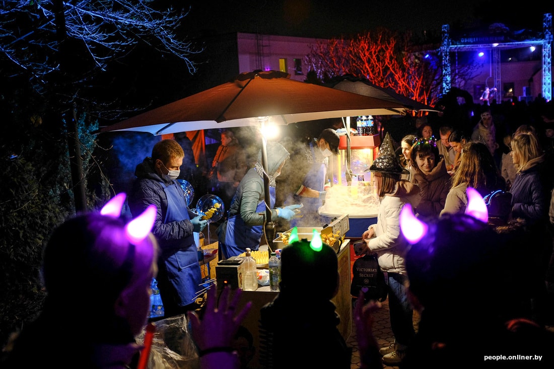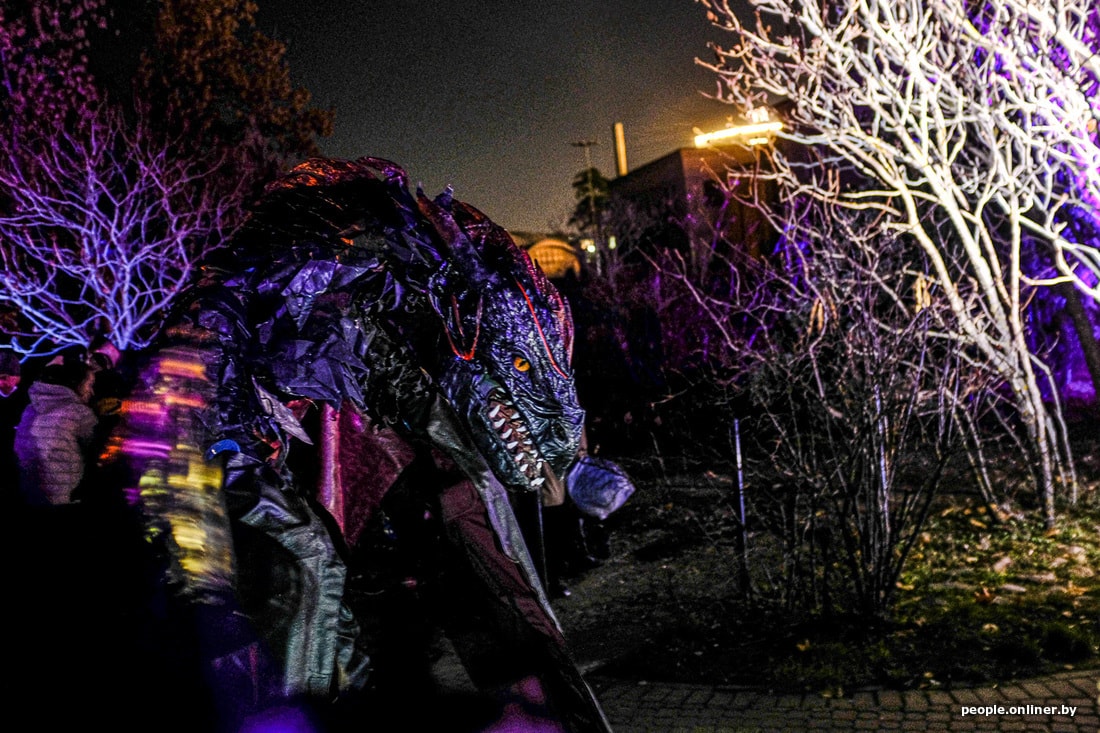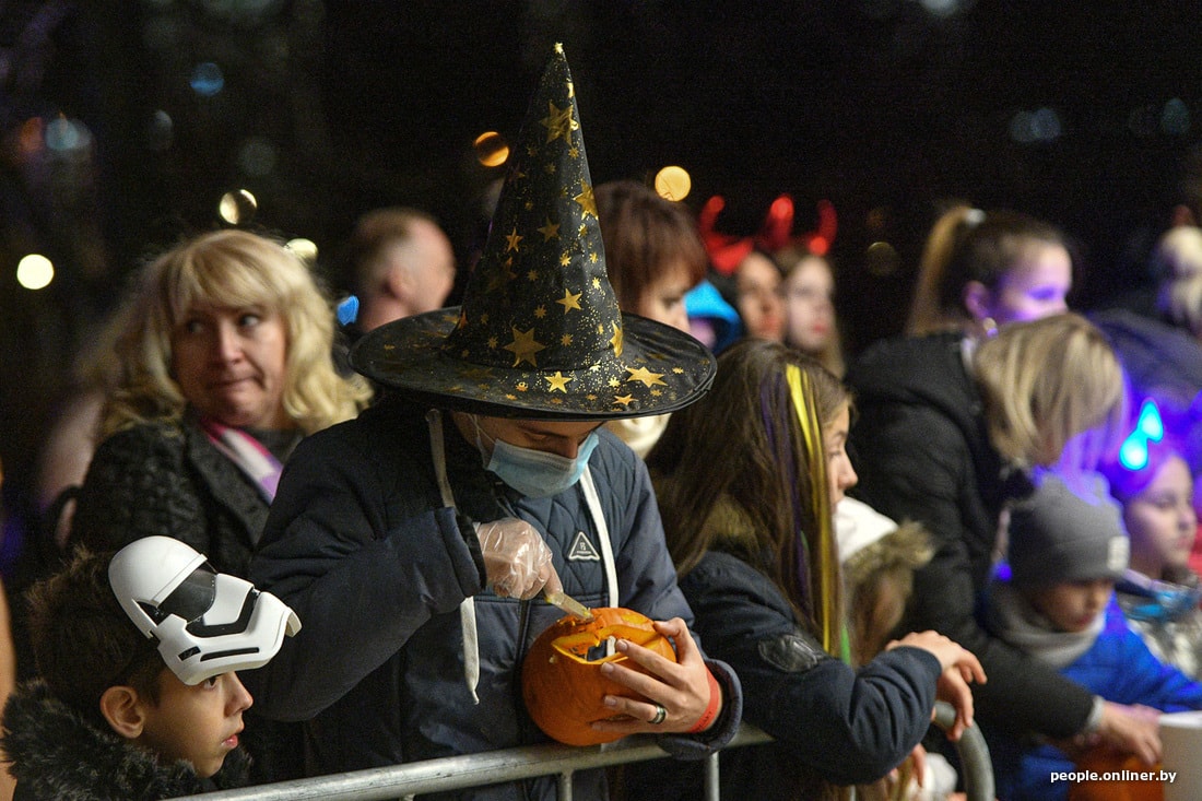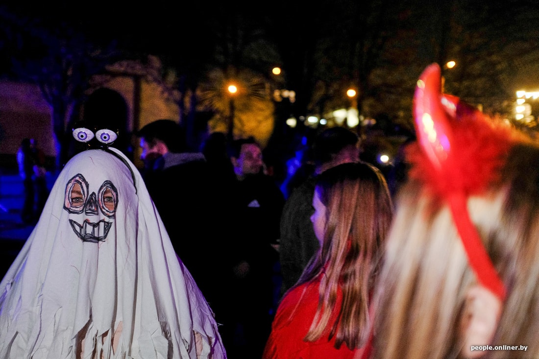 Официально «Общегородской Хэллоуин» стартовал в 19:00, но на проспекте Победителей ведьмы, вурдалаки и висельники были замечены намного раньше. Стояли они наравне со всеми смертными и за билетами в кассу: воспользоваться крыльями или другими сверхспособностями никто так и не решился (или решился, но под покровом тьмы мы этого не увидели).