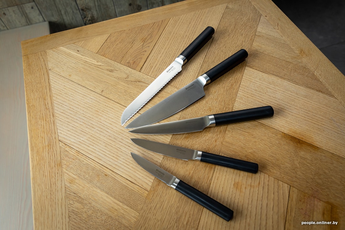 — В целом на первый взгляд ножи недорогие. Точно лучше, чем раньше были китайско-бразильские «Трамонтина» — помните такие? Или что у вас сейчас на даче лежит?