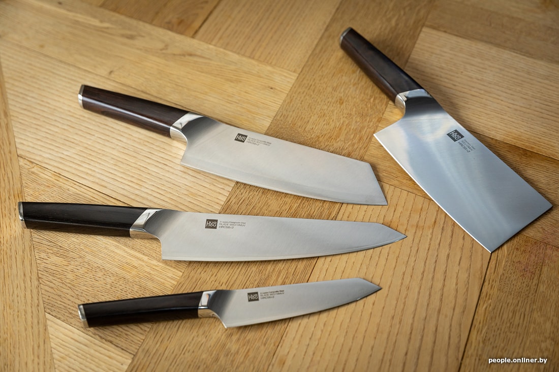 — Трехслойная сталь, чисто азиатские ножи... — рассматривает набор Антон Каленик. — «Топорик» для мяса намного лучше, чем мы видели до этого, тяжелее. Хотя это все равно не топор! Таким ножом удобно шинковать.