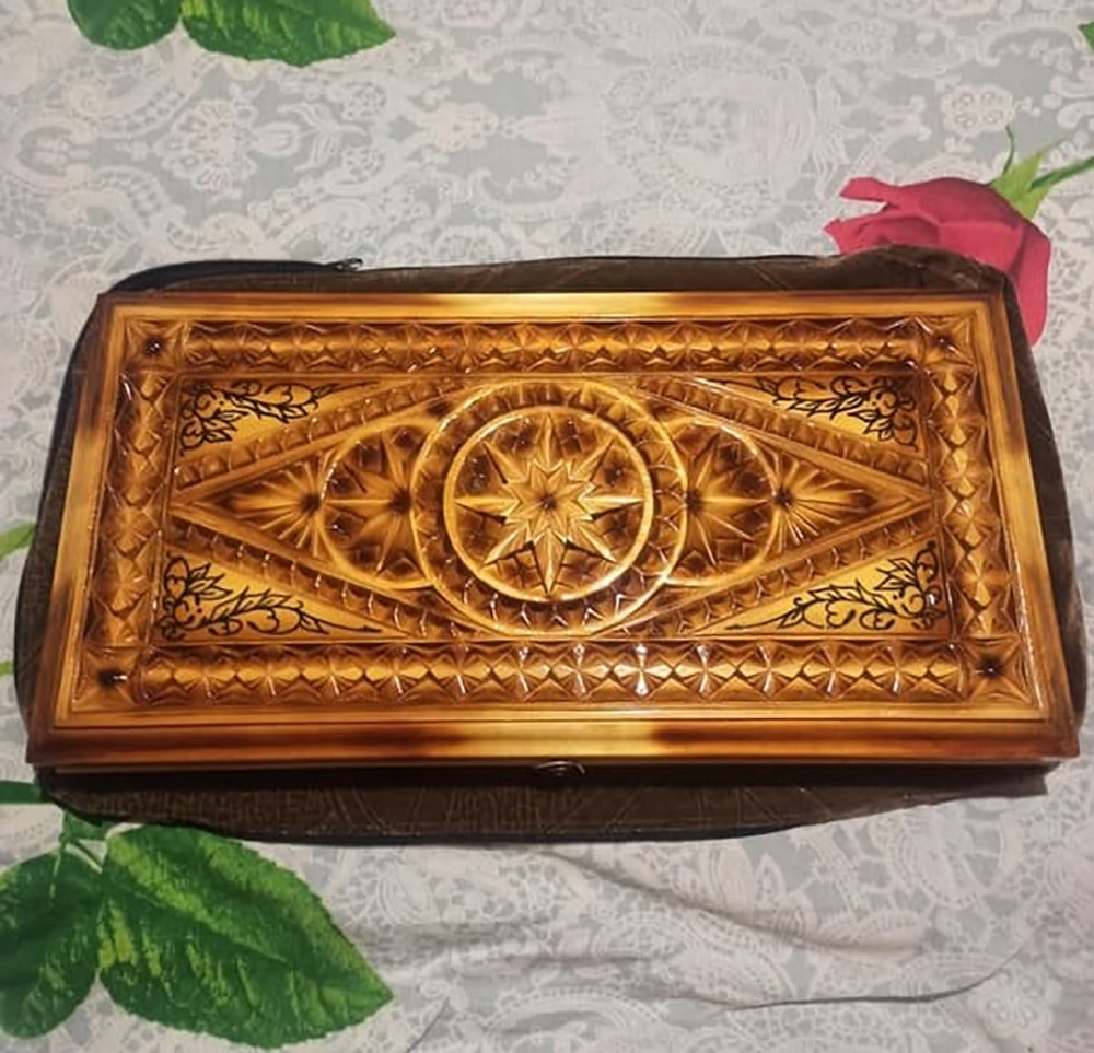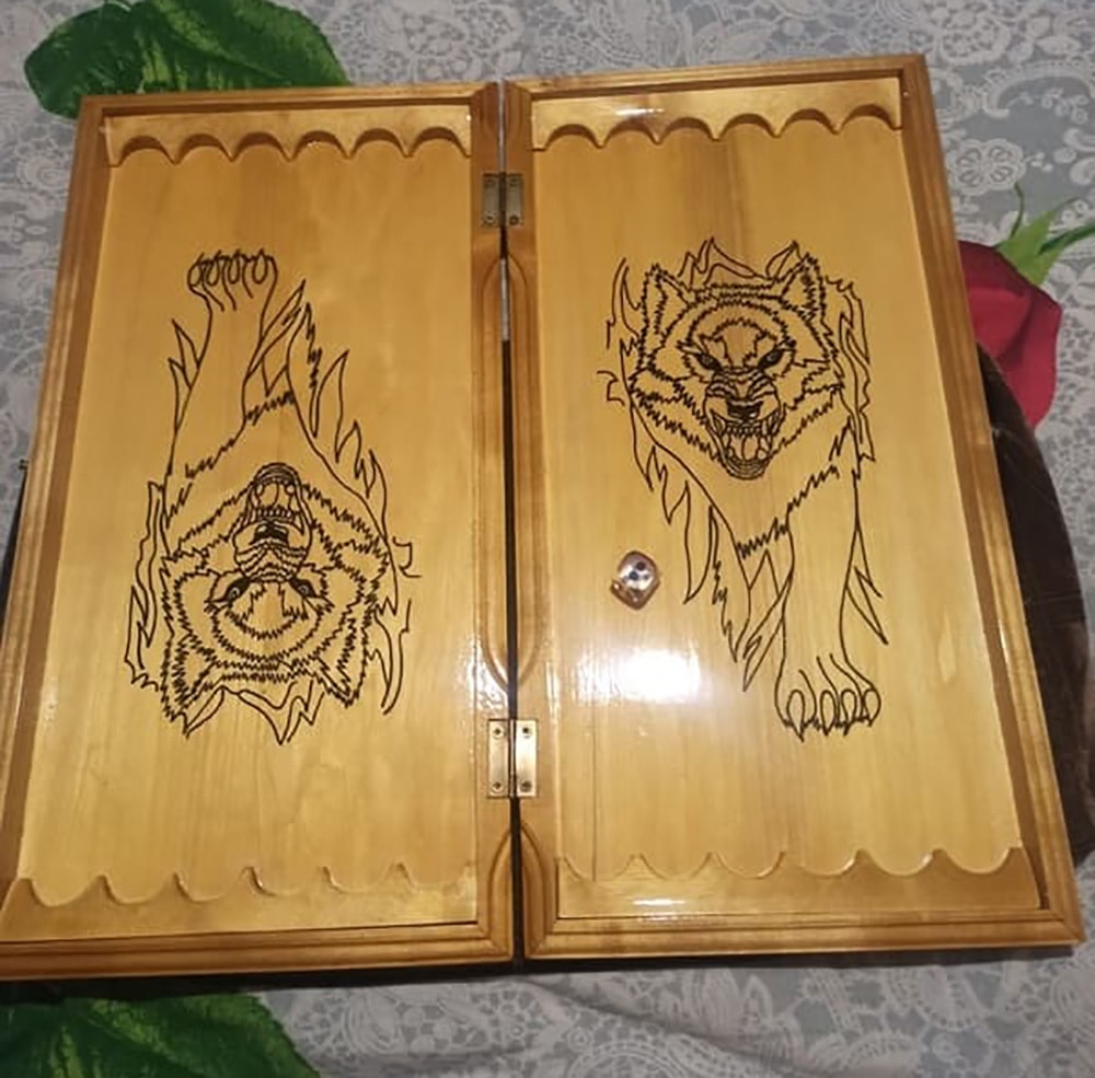 Собственно, с этим изделием все понятно. Есть дерево, резьба по нему. Есть даже грозный волк. И кожаный чехол. Изготовление всего этого, видимо, заняло немало времени и потребовало серьезных усилий. Автор объявления просит за свой лот 550 рублей.