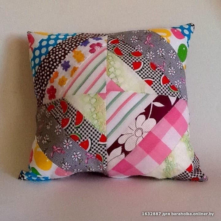 Ну и конечно, не оставим без внимания тему подушек. Вот вам интересный вариант. Стоимость — 25 рублей, цены магазинные, а работа ручная.