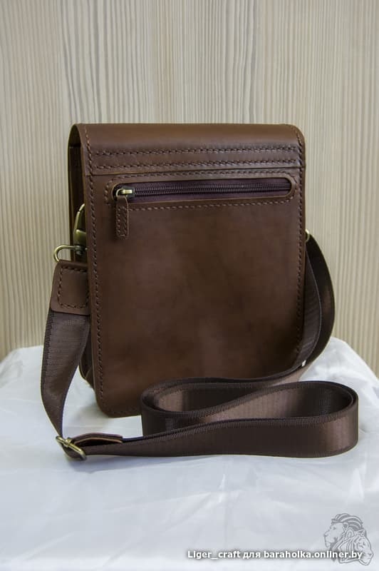 Удобная, компактная, кожаная. Автор объявления сообщает, что продает не только стандартные сумки, он может изготовить изделие желаемого размера под заказ. Цена (судя по всему, за стандартную модель) — 150 рублей. Если хотите заказать — договаривайтесь сами.
