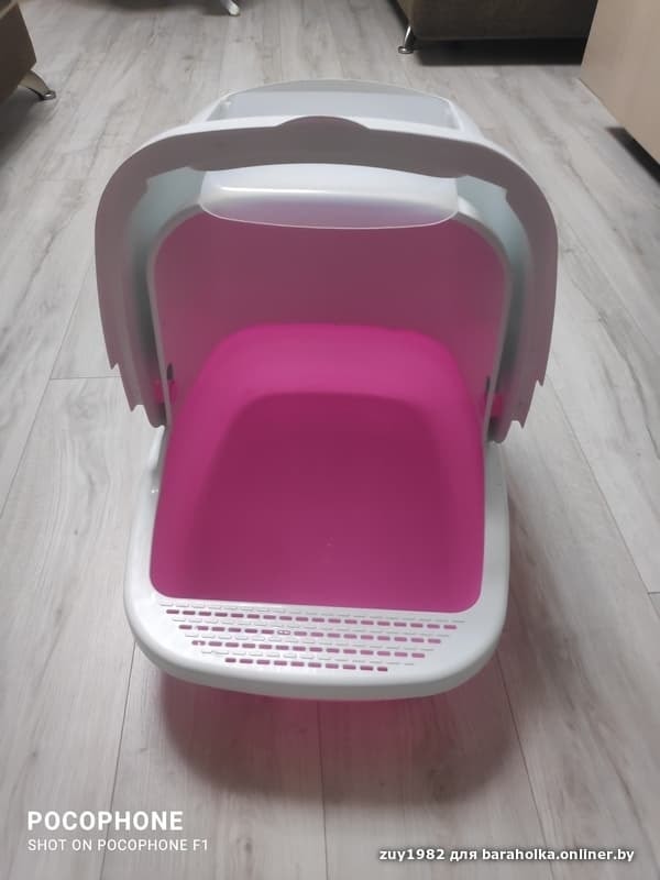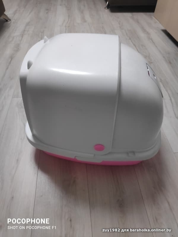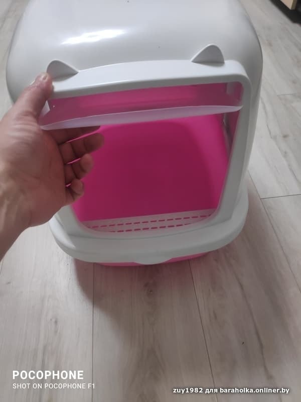 Если ваш котик интроверт и щепетильно относится к своей личной жизни, этот вариант идеален. Туалет похож на кошачий домик, только пластиковый. Предыдущему коту такое изобретение не подошло по размеру, но он постеснялся об этом сказать. Хозяева догадались и теперь продают туалет за 50 рублей.