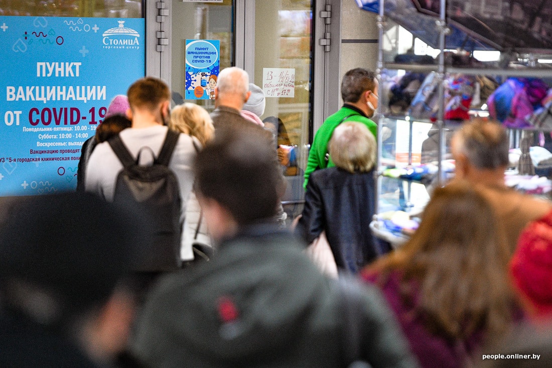 С недавних пор пункты вакцинации появились даже на рынках. Теперь, например, можно привиться в здании рынка «Московский» на проспекте Газеты «Звязда», 16. Точка работает с 10 до 19 в будние и с 10 до 14 в субботу. Но сегодня тут совсем пусто.