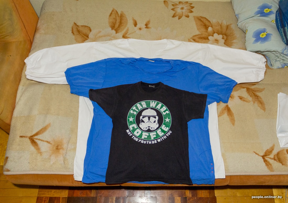Когда весил меньше, 190, одежду легко находил, но потолстел на 10 кило — и появились реальные сложности. Рабочую форму мне сшили на заказ: таких размеров нет в магазинах. Куртки, майки ищу в секондах, плюс у меня дядька большой — что на него не налезет, отдает мне. В шкафу есть майка 8XL (не самая большая), размер обуви — 47. Выбора обуви тоже особо нет: обычно это пять пар разных линеек с квадратными носами. О красных мокасинах остается только мечтать.