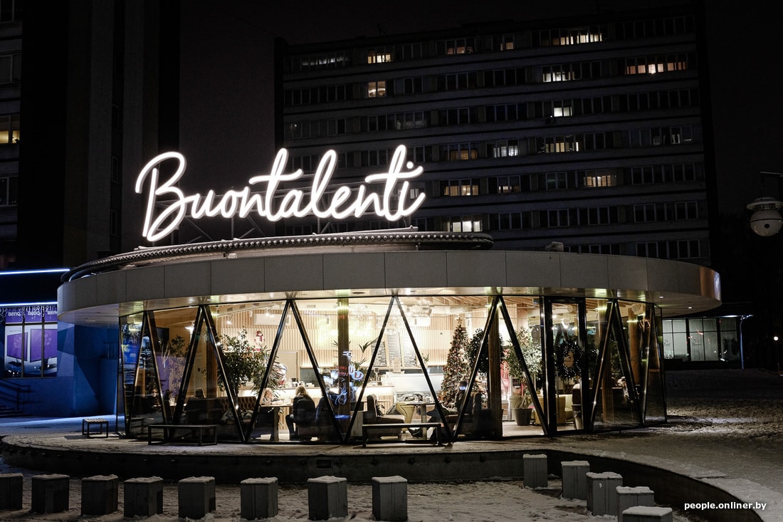 Рядом с кинотеатром «Беларусь» находится кафе-джелатерия Buontalenti (Советская, 62а). Это семейное заведение с ярким интерьером, специализирующееся на итальянском мороженом собственного приготовления, открылось в мае. Кроме мороженого (оно есть даже со вкусом сыра дорблю) тут можно выпить халвичный раф, глинтвейн, отведать круассан с печеным перцем и кремчизом либо разнообразные пирожные. Их, кстати, готовят в собственной кондитерской.