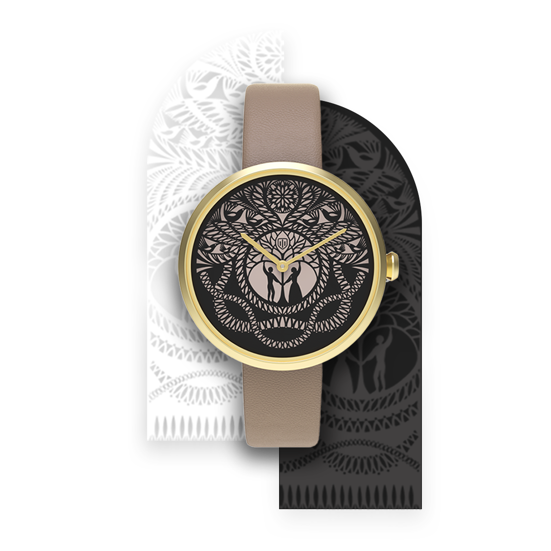 «Для меня вытинанка — это продолжение моей семейной традиции, развитие молодечненской школы вытинанки. Современная белорусская вытинанка объединяет в себе традиционную фольклорную форму и профессиональное станковое искусство. Отличается выразительностью композиции и стилизации образов, лаконизмом форм и силуэтов. В белорусской вытинанке достигается гармония орнаментальных ажурных элементов и силуэтов», — отметила художница. Дизайнеры и конструкторы команды Hvilina совместно с Елизаветой адаптировали авторские работы Червонцевой, воплотив их в дизайне наручных часов.