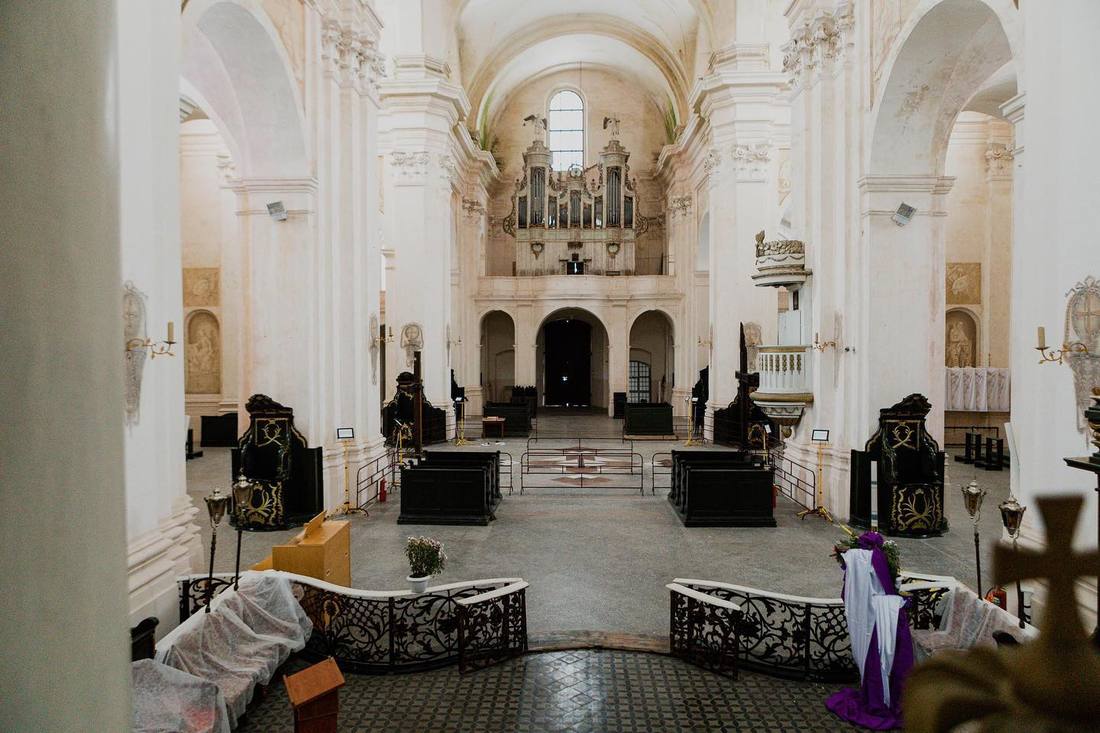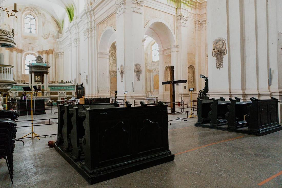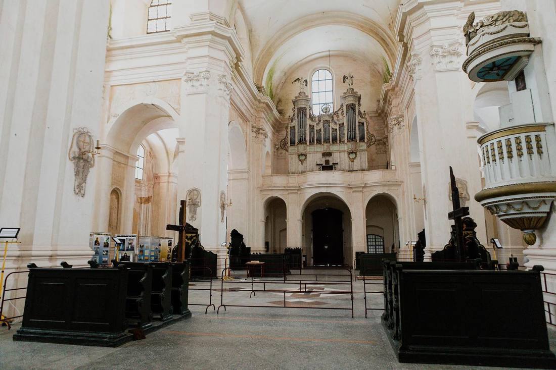 Вот как выглядит костел изнутри, фото сделаны 27 декабря. Центр под куполом огорожен для охраны, потому что купол — самое слабое место, пусть и застрахованное. В церкви пока отсутствует свет.
