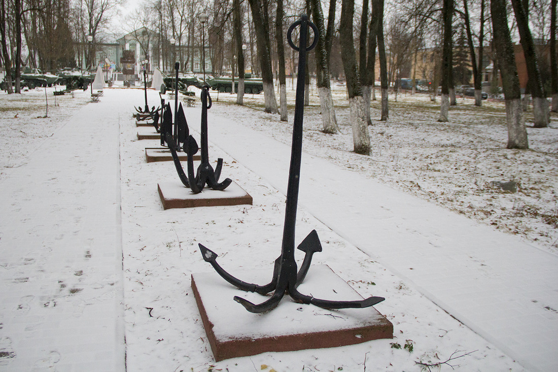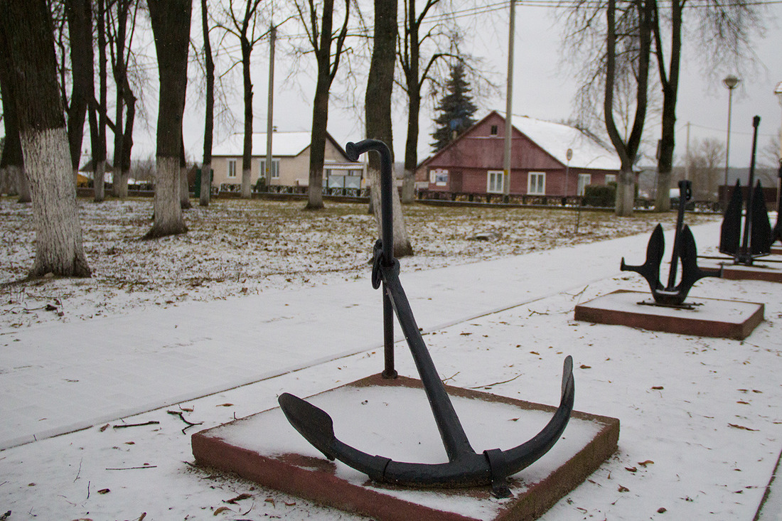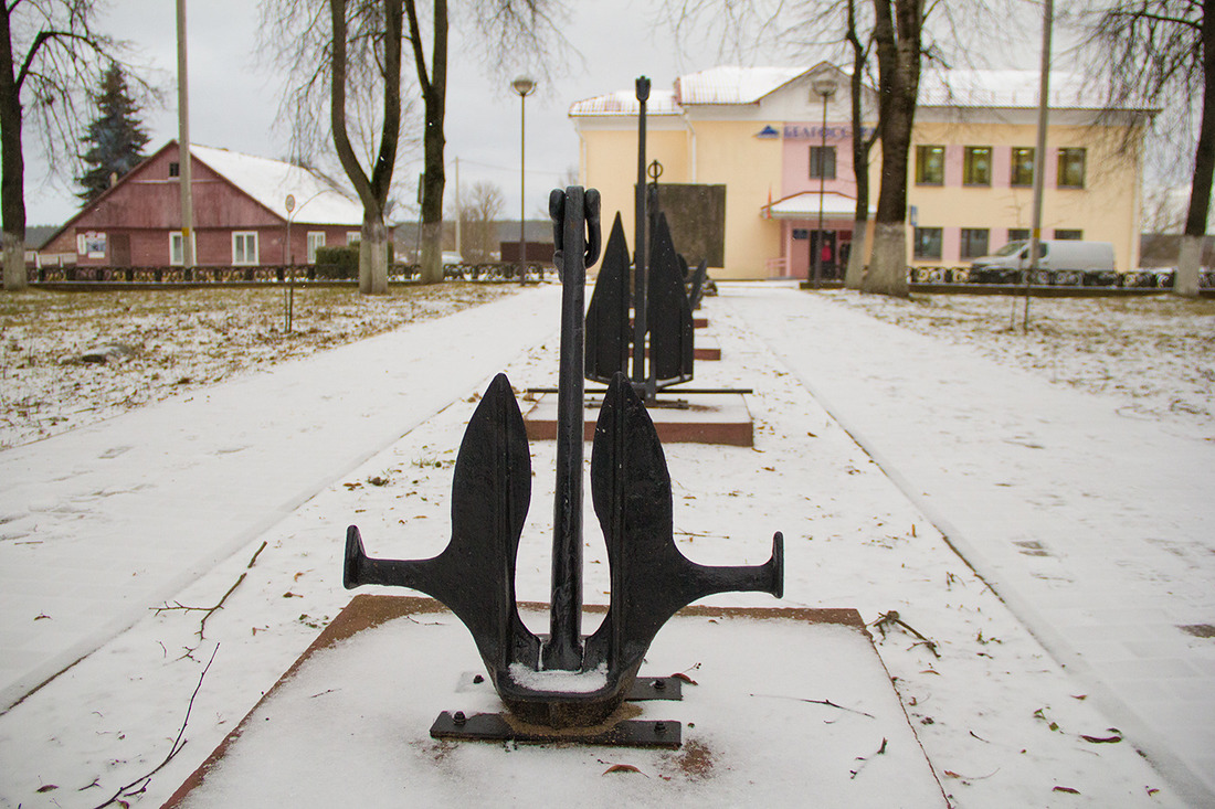 В 2017 году в городском парке Бешенковичей открыли необычную аллею — на ней восемь якорей, которые нашел в Двине Андрей Трубецкий. Среди них и этот, 200-килограммовый. Аллея — дань памяти землякам, «плоты водившим в Ригу и охранявшим город от врагов». Такие строчки выбиты на мемориальном камне.