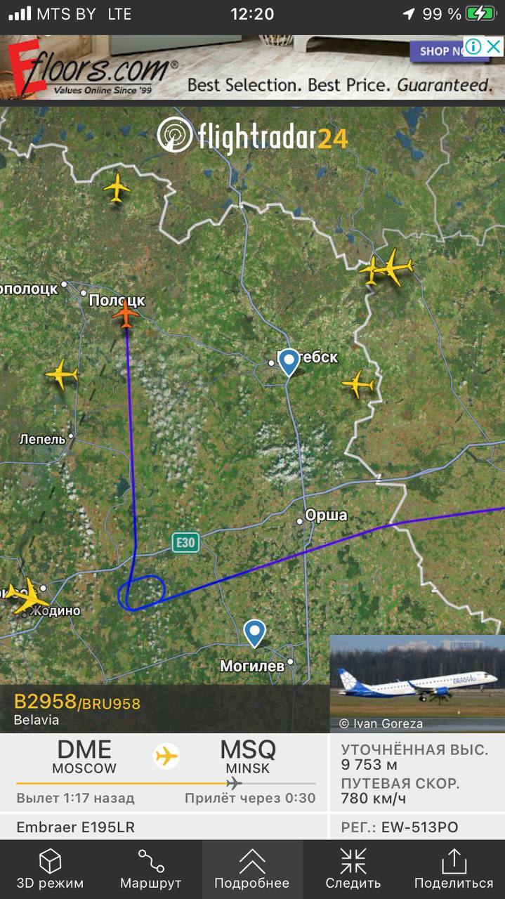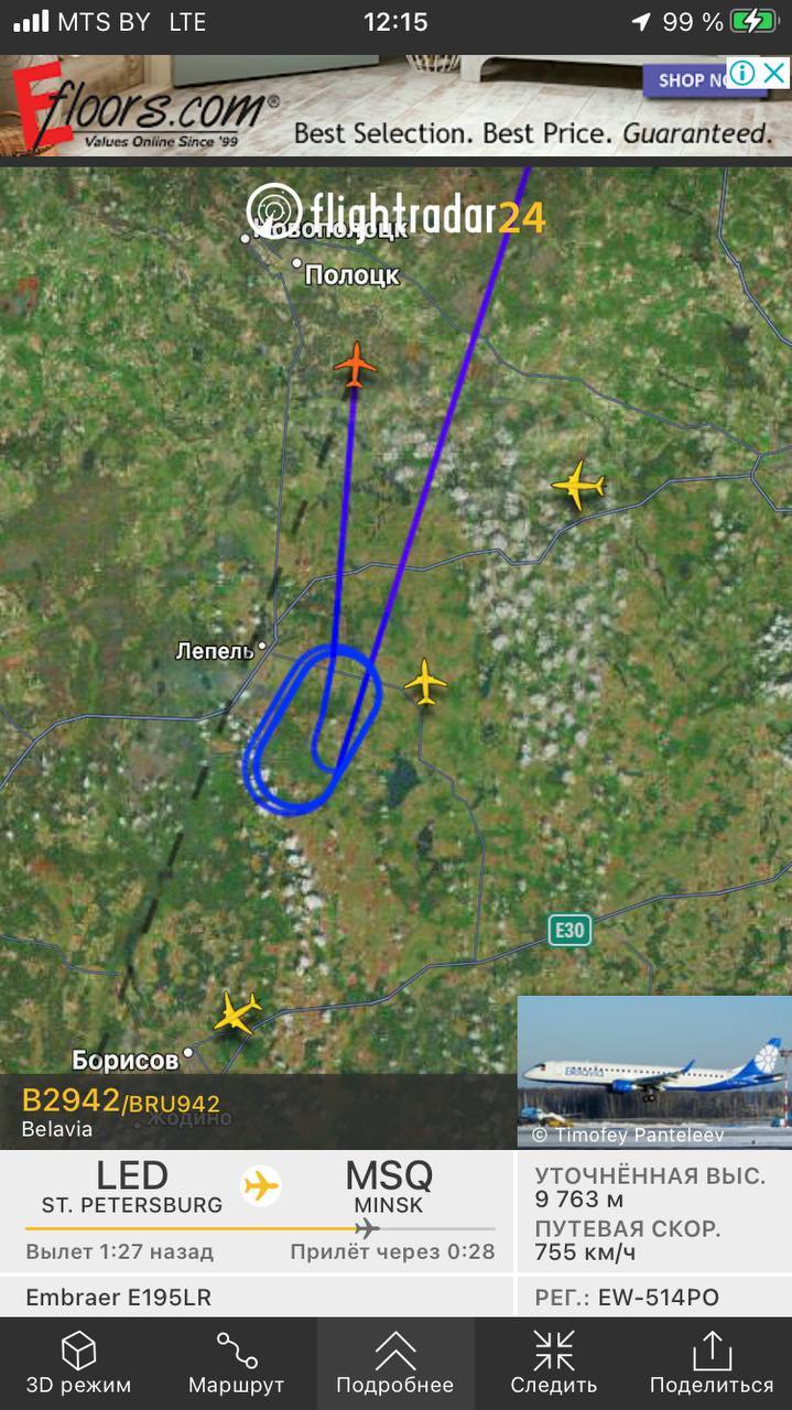 Кроме того, читатели Onlíner заметили, что два самолета «Белавиа», летевшие в Минск из Москвы и Санкт-Петербурга, не сели в белорусской столице. Сделав круги, они направились в сторону Санкт-Петербурга.