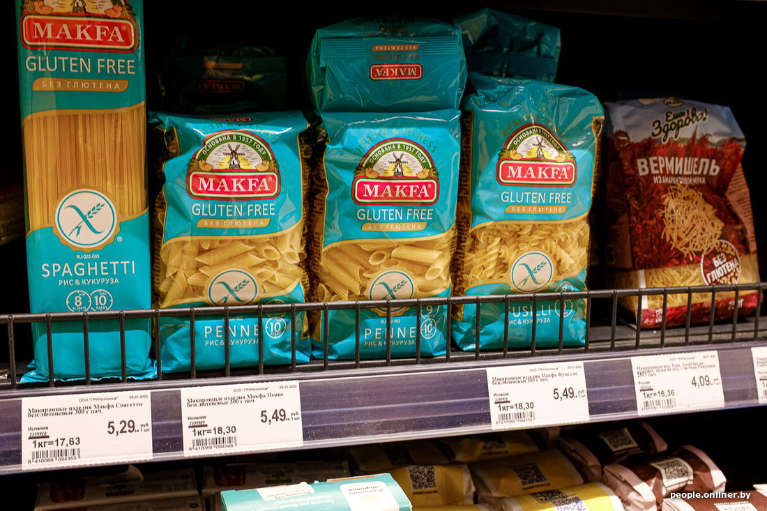 Если судить по продуктовым полкам в магазинах, в Беларуси дефицит безглютеновых аналогов макарон, муки и так далее. Отечественная пищевая промышленность их практически не производит, а те, что ввозятся из-за границы, либо раскупаются за считаные часы, либо стоят в три раза дороже пшеничных. С молоком картина схожая: цена кокосового или миндального в разы выше, чем «классического» коровьего.