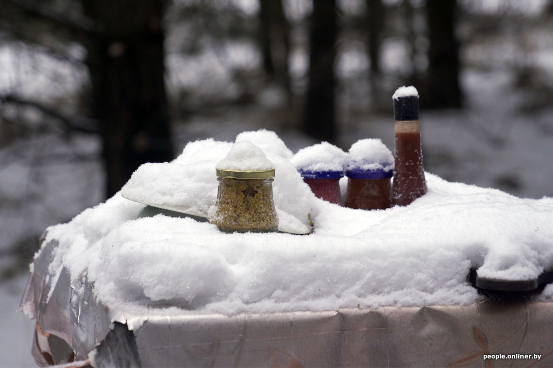 Дело было в середине января. В обычный будний день мы затемно оказываемся на укутанной снегом колее, уводящей от Лесного кладбища. С собой у нас пару пакетов вещей да еды, а на связи Виктор — этакий летописец жителей свалки, которых мы и пытаемся найти. Наш собеседник советует идти по следам, вдоль деревьев, мы пытаемся услышать хоть какие-то звуки или почувствовать запах костра, если повезет — увидеть дым или свет. Так проходит 15—20 минут — ничего. Возвращаемся на исходную. Очередные созвоны, хождение по кругу, практика в следообразовании — и мы оказываемся на подобии дороги, которая еще осталась от давно не ходящих здесь машин.