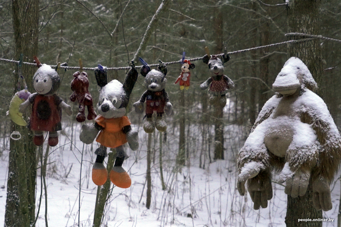 То, что охраняет зверье, сложно назвать домом. Строение скорее напоминает гигантскую будку или строительный вагончик, но весь этот кусочек земли не лишен домашнего уюта: по всему двору разбросаны детские игрушки, а Микки-Маусов и вовсе подвесили за уши на всеобщее обозрение рядом с коврами и футбольными флагами. Входную дверь украшают искусственные цветы и растения, на фасаде, помимо тазика и полок, прибито несколько часов со стоячими стрелками. Под ногами кастрюли с намертво прилипшими макаронами да засыпанные снегом мешки.