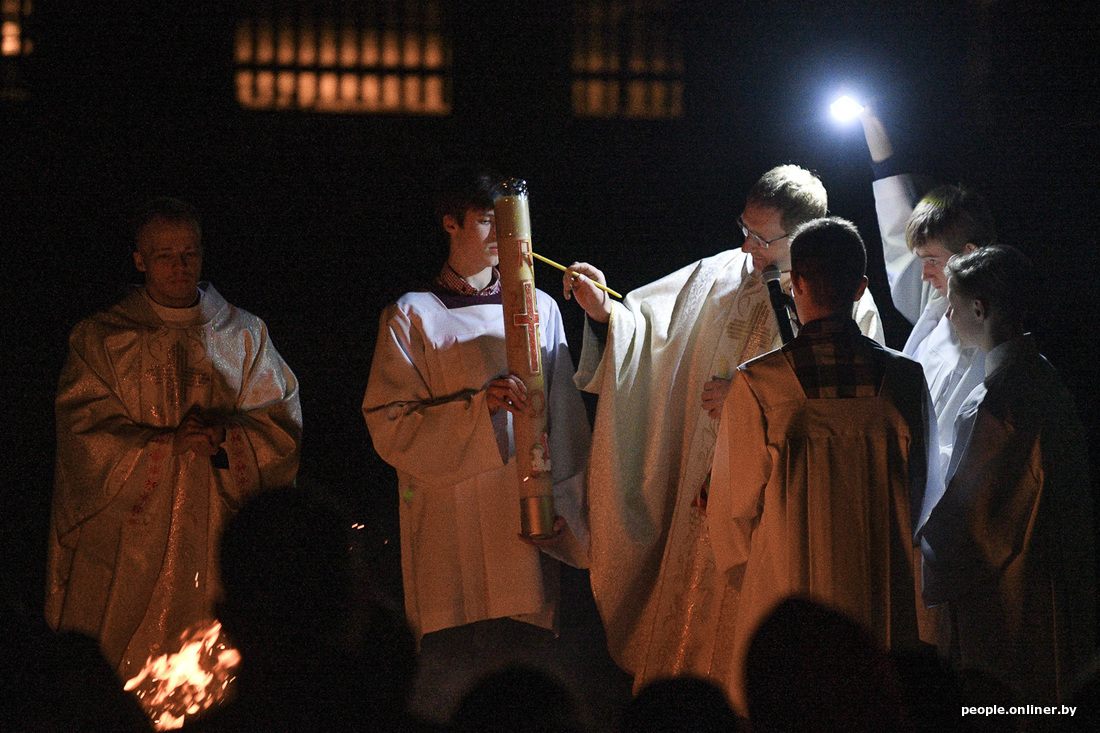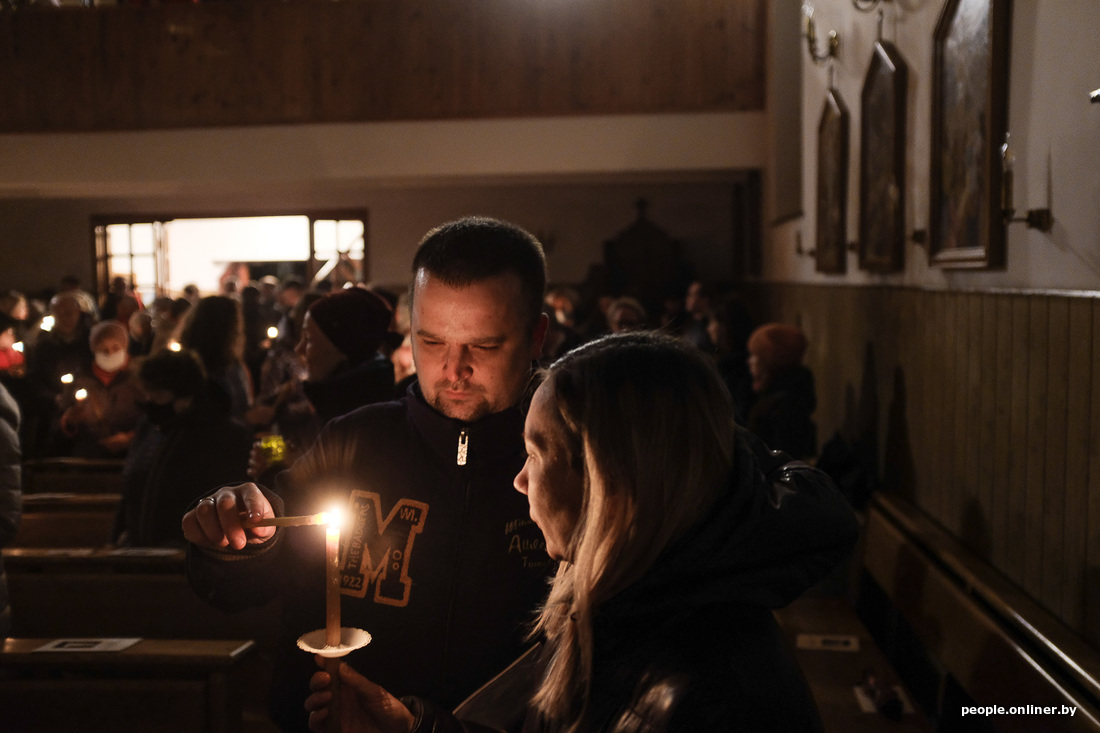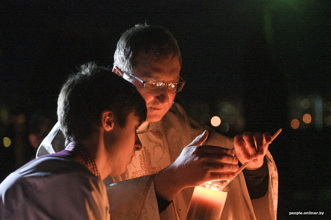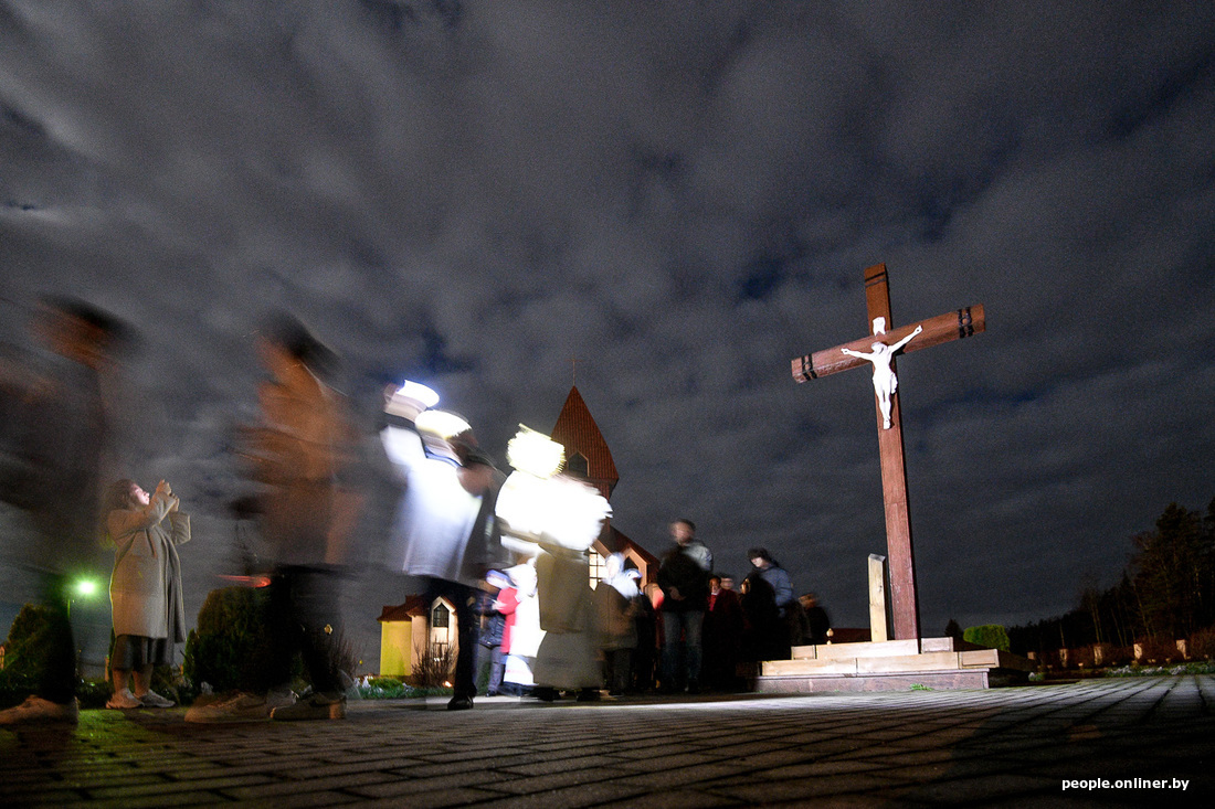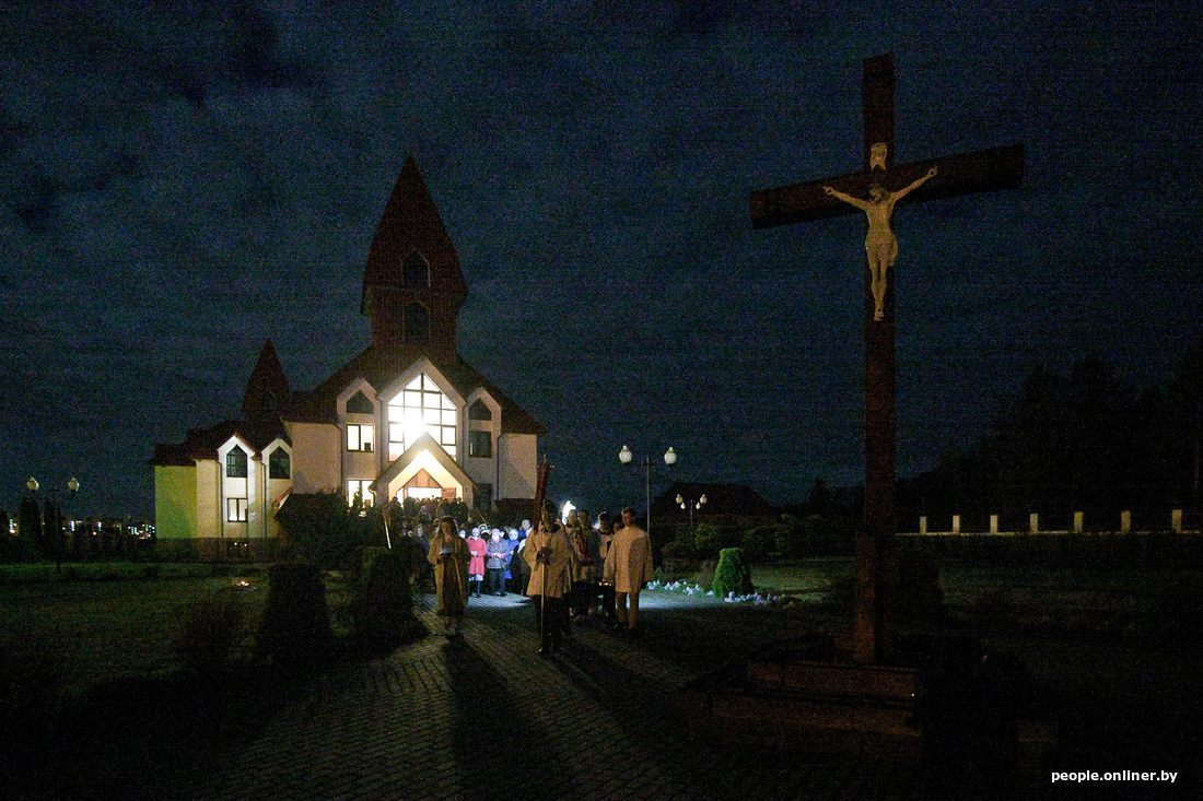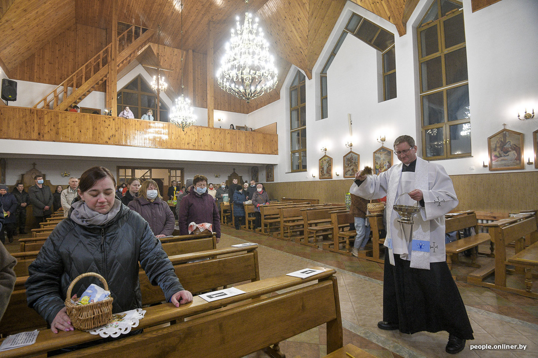 Сегодня католики и протестанты отмечают Пасху — главный христианский праздник, посвященный воскресению Иисуса Христа. Для верующих он означает перерождение Иисуса, победу жизни над смертью. Накануне тысячи верующих пришли в храмы освятить корзинки, в которых традиционно лежат крашеные яйца, соль, хлеб, мясо, сыр и сдоба, а поздним вечером многие отправились на праздничную службу. Мы в свою очередь побывали в Жодино и увидели, как Пасху встречают в местном костеле Матери Божьей Фатимской.