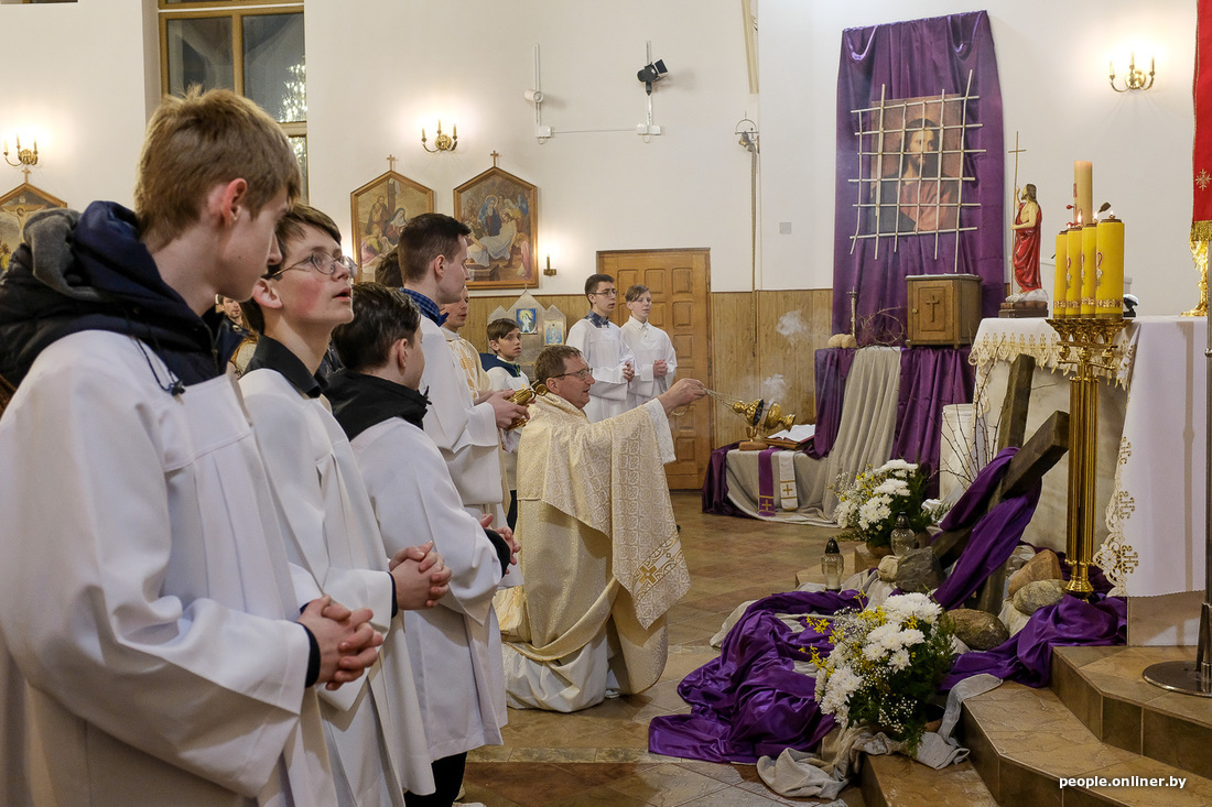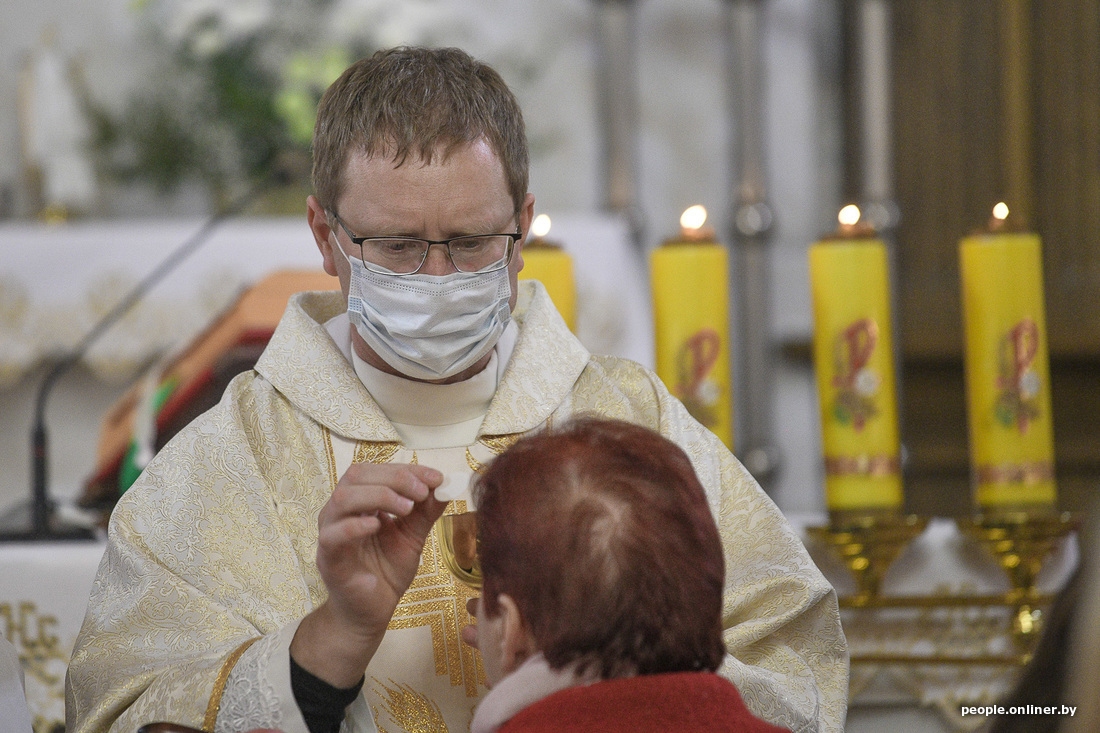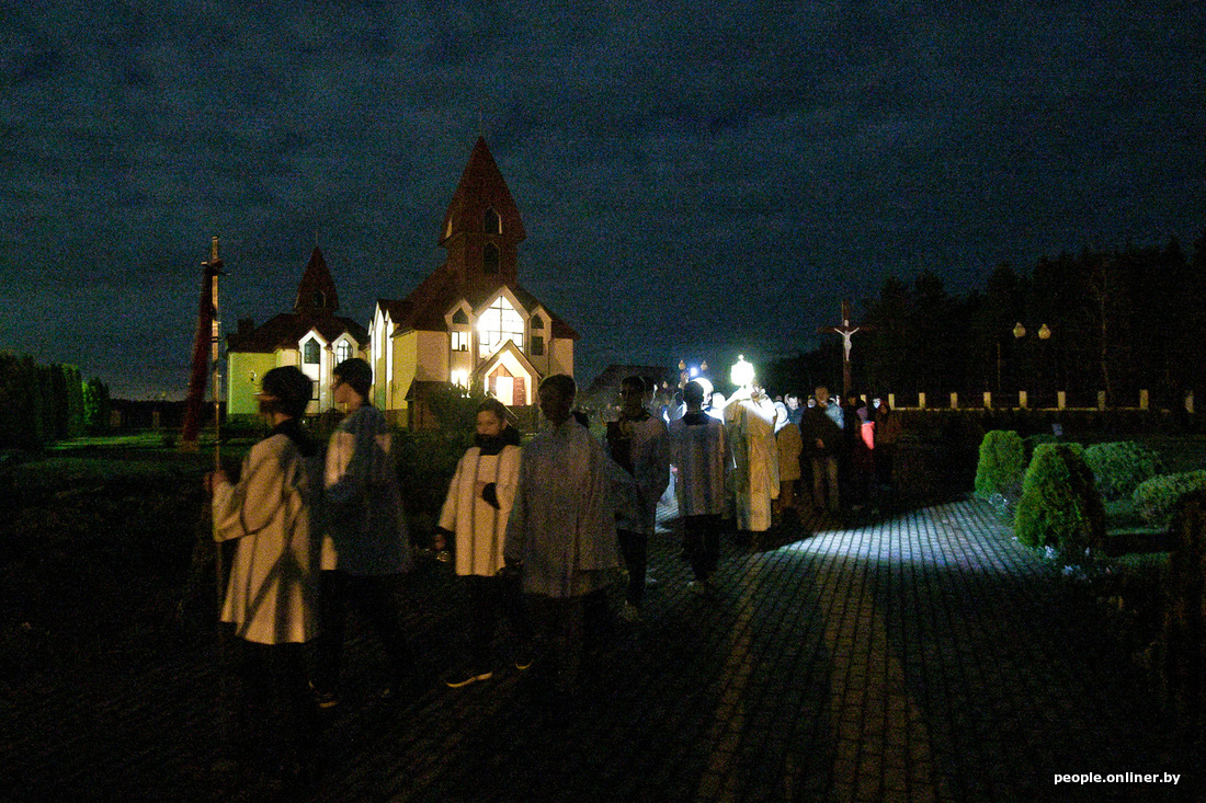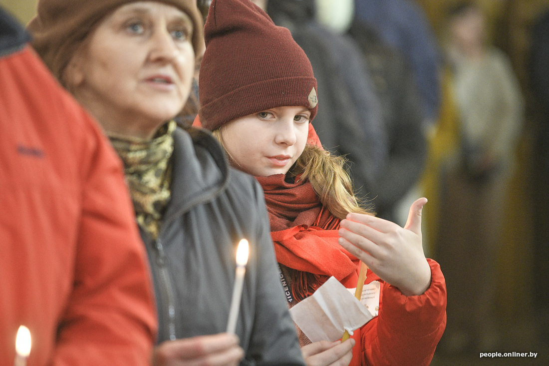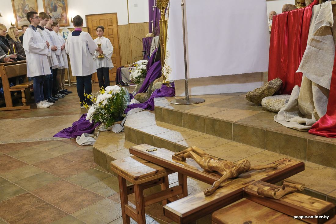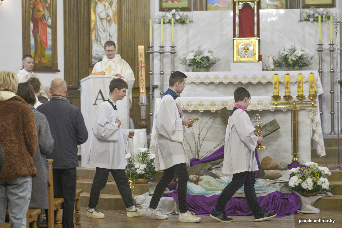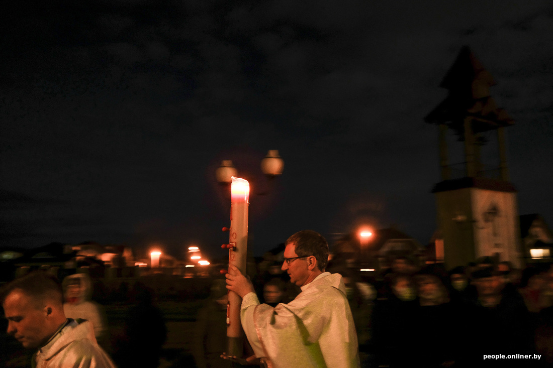 Сегодня католики и протестанты отмечают Пасху — главный христианский праздник, посвященный воскресению Иисуса Христа. Для верующих он означает перерождение Иисуса, победу жизни над смертью. Накануне тысячи верующих пришли в храмы освятить корзинки, в которых традиционно лежат крашеные яйца, соль, хлеб, мясо, сыр и сдоба, а поздним вечером многие отправились на праздничную службу. Мы в свою очередь побывали в Жодино и увидели, как Пасху встречают в местном костеле Матери Божьей Фатимской.