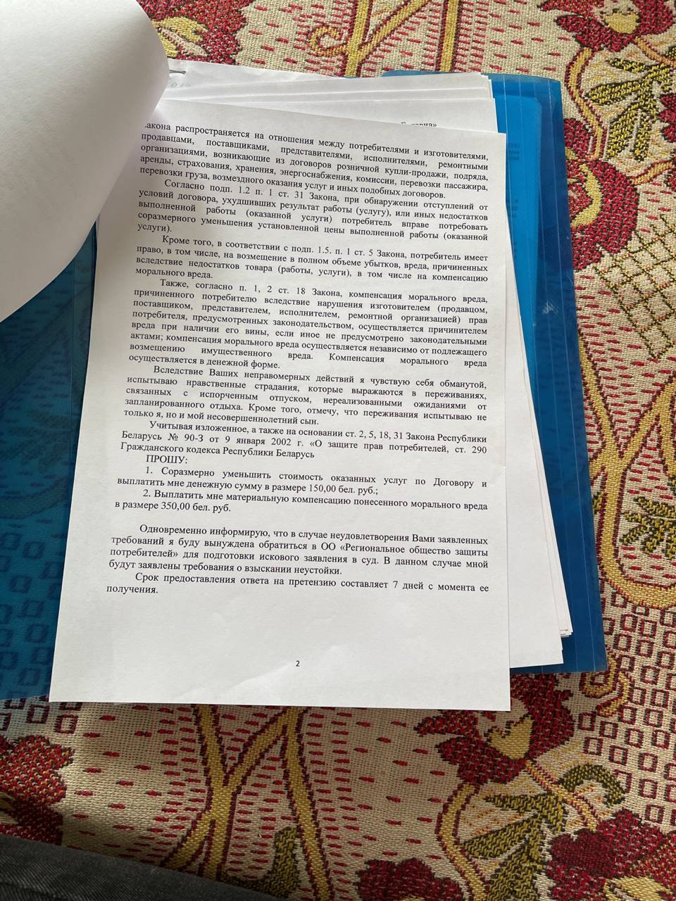 — В итоге меня не послушали, сказали приезжать за деньгами ($40). Но я их не взяла и поэтому написала претензию: просила выплатить 120 у. е. Я взяла всю сумму за тур, разделила на количество реально использованных ночей и объявила о компенсации. Однако мне отказали, — отмечает она.