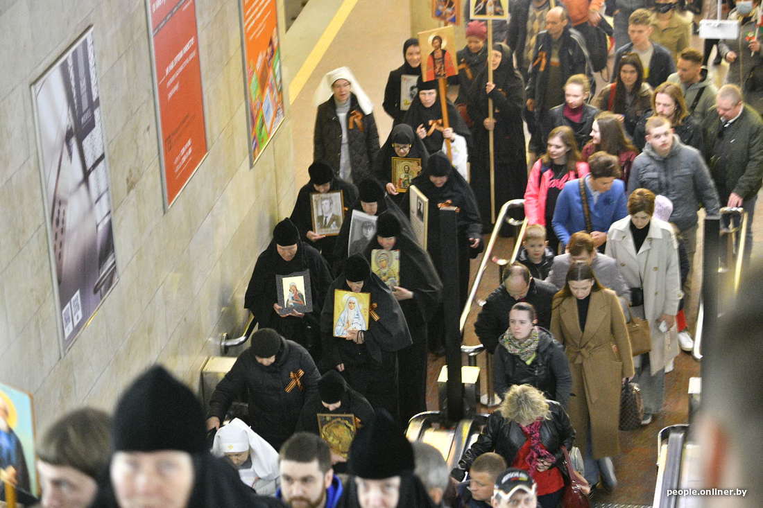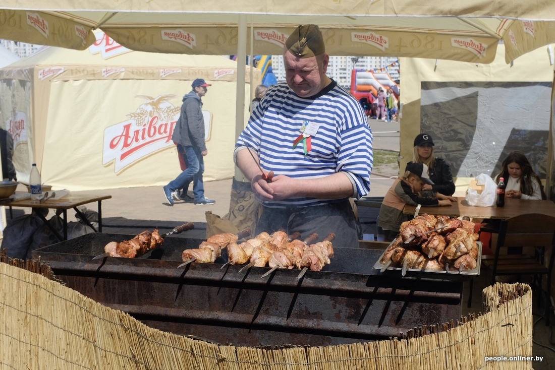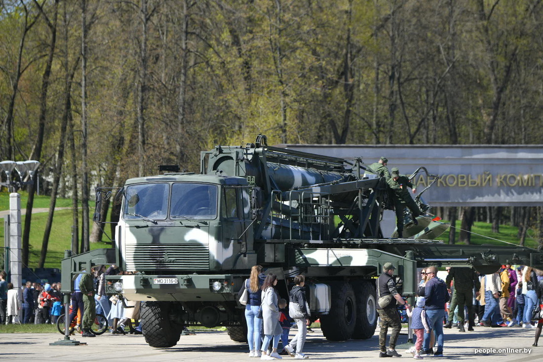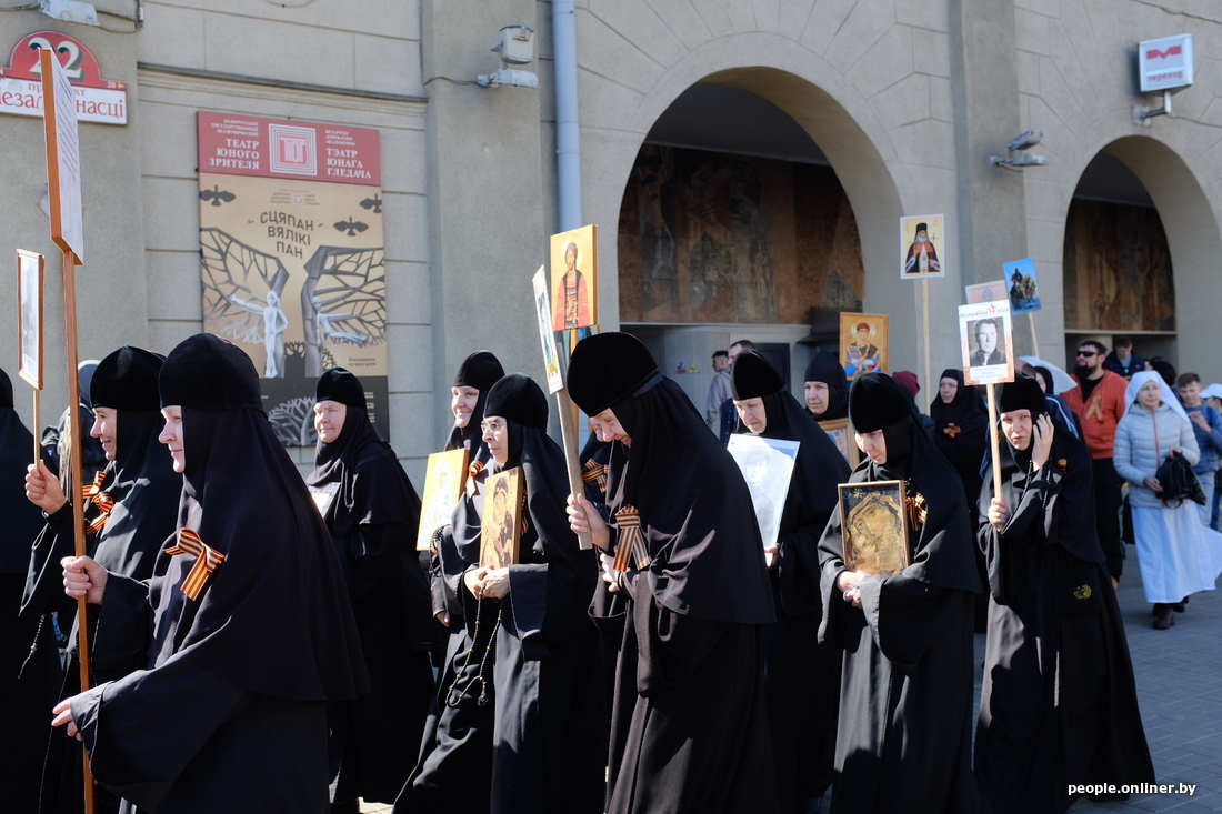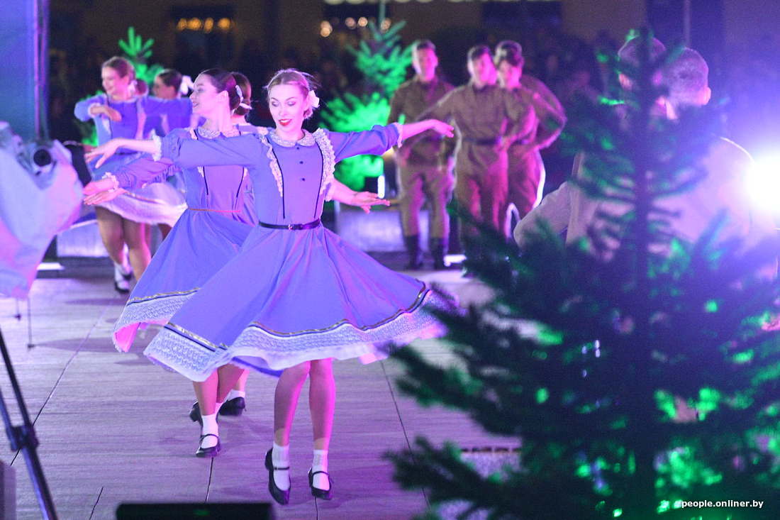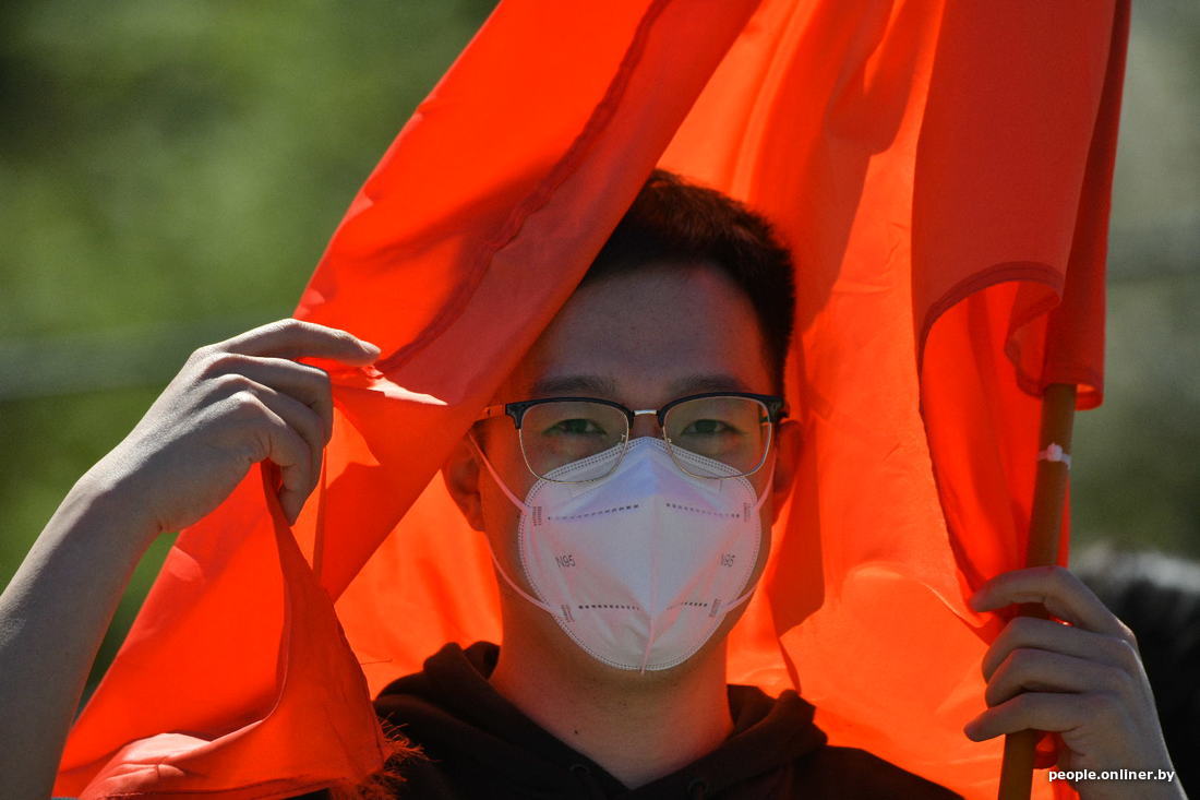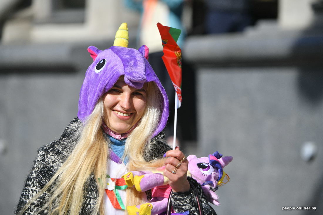От Октябрьской площади колонны людей пришли к площади Победы. Здесь Александр Лукашенко приветствовал ветеранов и всех участников шествия, возложил венок к монументу Победы и выступил с речью.