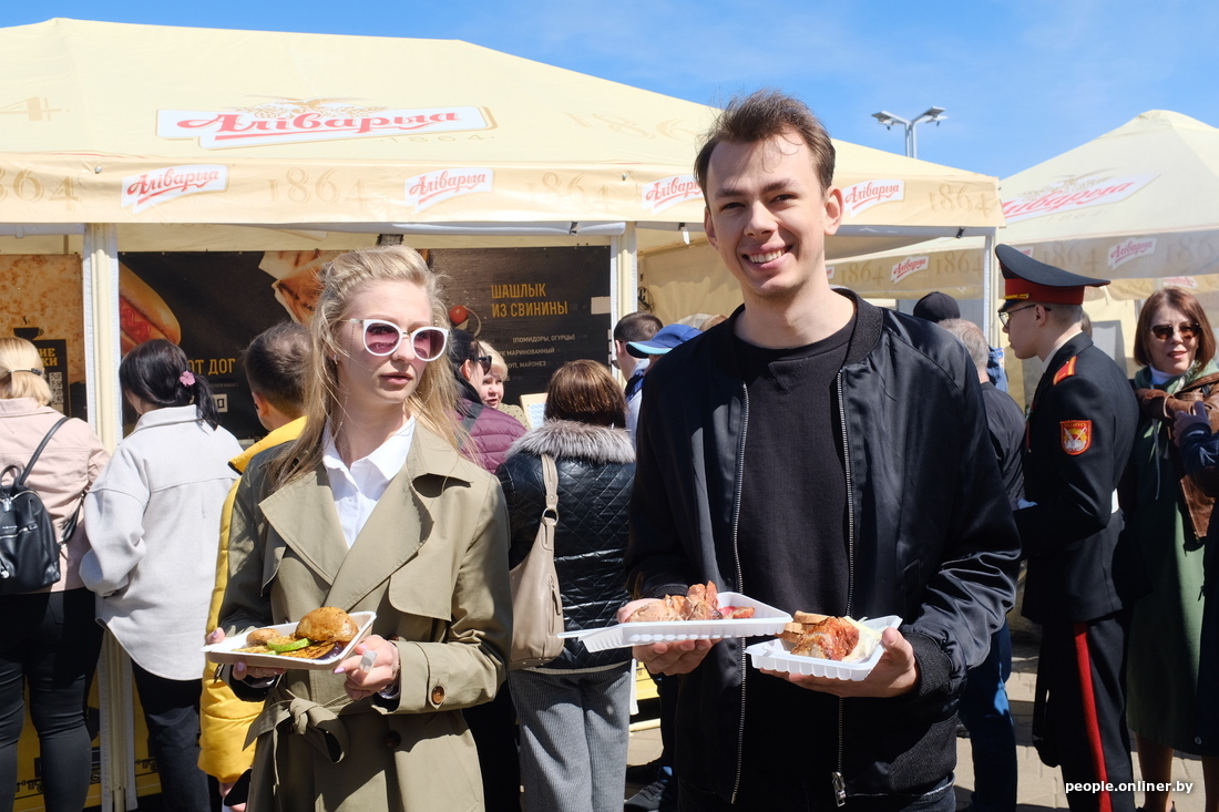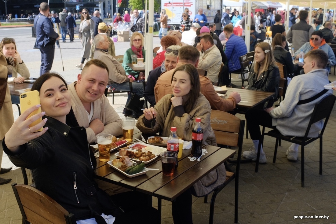 С самого утра у Дворца республики людей больше, чем обычно. Отсюда будет двигаться шествие к монументу Победы. Вот какая обстановка была в районе Октябрьской площади.