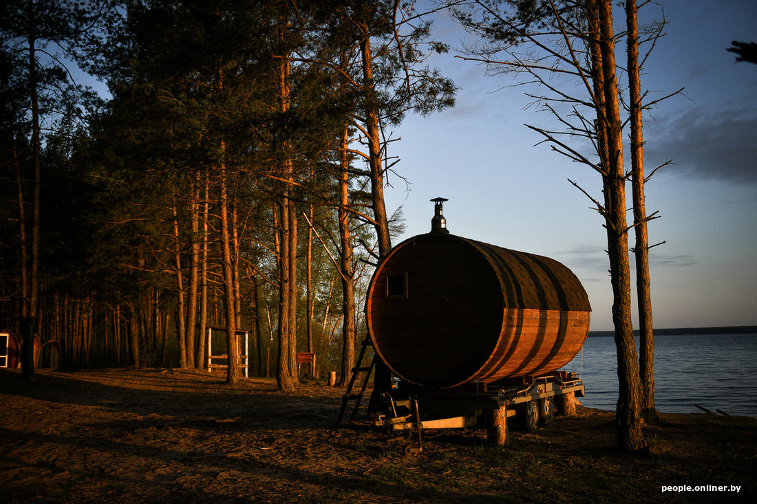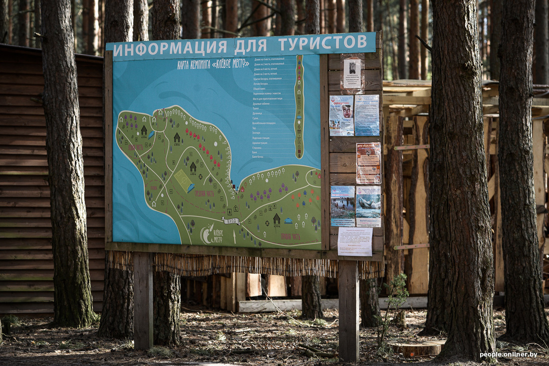 Пространство между сосен, где расположено несколько десятков домиков, пронзают солнечные лучи. Волны бьются о высокий берег водохранилища, под ногами крутится лесной кот, а не ожидавшие гостей сотрудники встречают нас и рассказывают, чем живет «Клевое место» в мае: «Пока наплыва посетителей нет — пара рыбаков с одной стороны пляжа, с другой — семья с детьми, остальное в вашем распоряжении». В июне, говорят, картина резко поменяется, некоторые выходные уже расписаны: то выпускные, то корпоративы, то свадьбы.