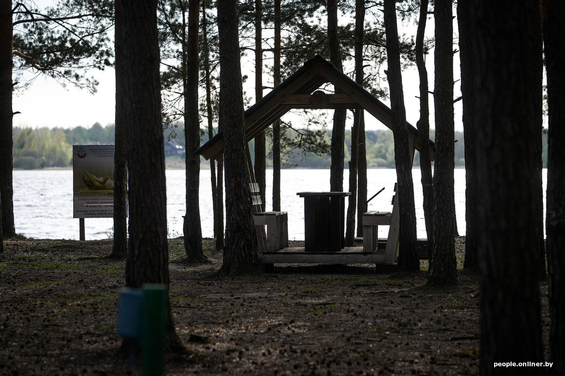 Подъехать к воде на машине не получится, путь перекрыт. Еще тут нельзя шуметь в ночное время, что оценили минчане — они тут основные гости.