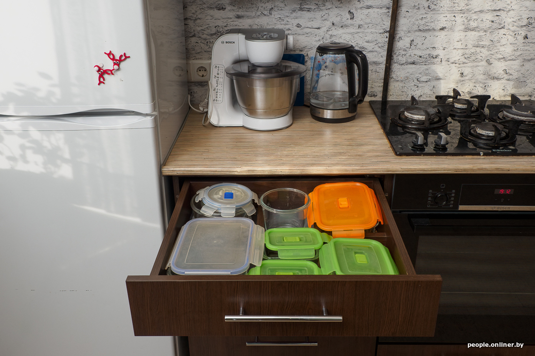 Сама Любовь тратит на наведение порядка не более 30 минут в день. В течение этого времени она развешивает и складывает постиранное белье, раскладывает вымытую посуду и так далее. На данный момент в ее квартире главное — удобство, о глянцевой красоте женщина позаботится после ремонта. Но минчанка никогда не боится внезапного прихода гостей: в ее доме всегда все в порядке.