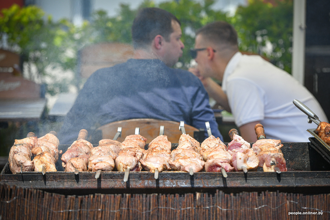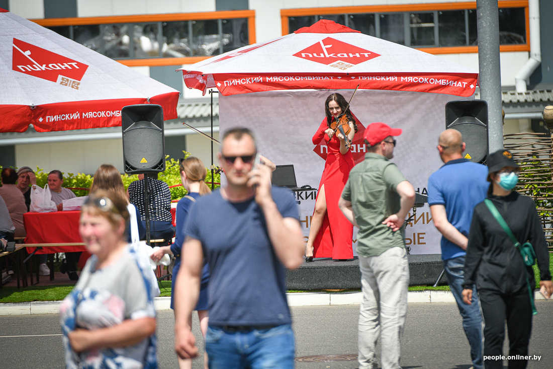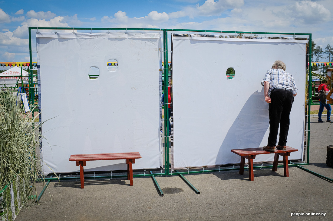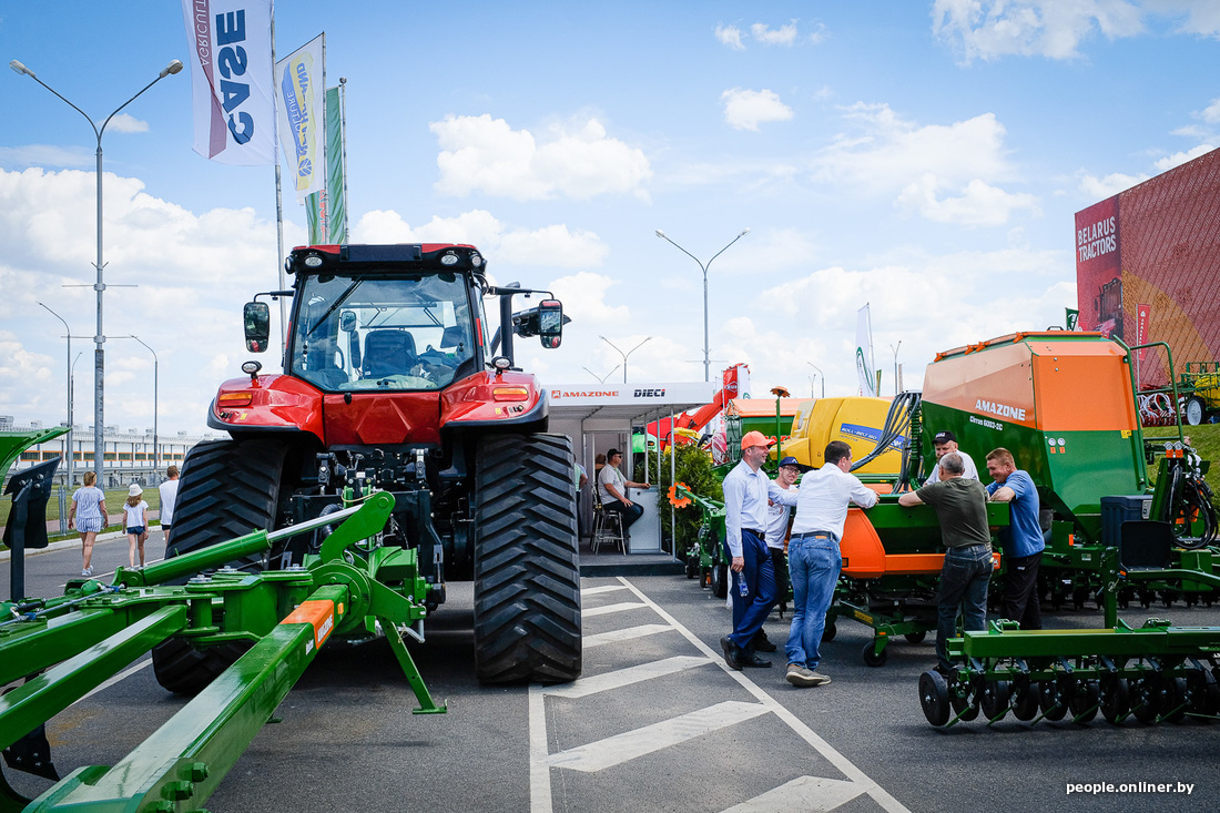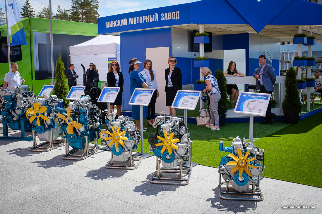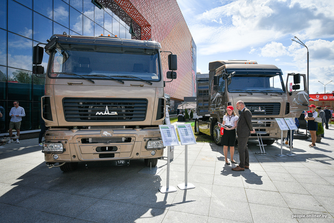 Место у парадного входа традиционно отдали титанам белорусской промышленности, импортную технику оставили за углом. На заднем дворе зверинец: бычки, свиньи, петухи, рыбы — все как на подбор.