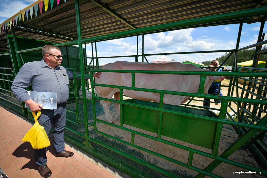 Помните этого белого бычка? Мы познакомились с ним год назад, и он все еще продолжает модельную карьеру. Малый повзрослел на год и набрал около ста килограммов мышц. Вообще, тут из года в год красуются одни и те же бычки и кони. Скоро ли подрастет смена (и есть ли она вообще) — пока неизвестно.