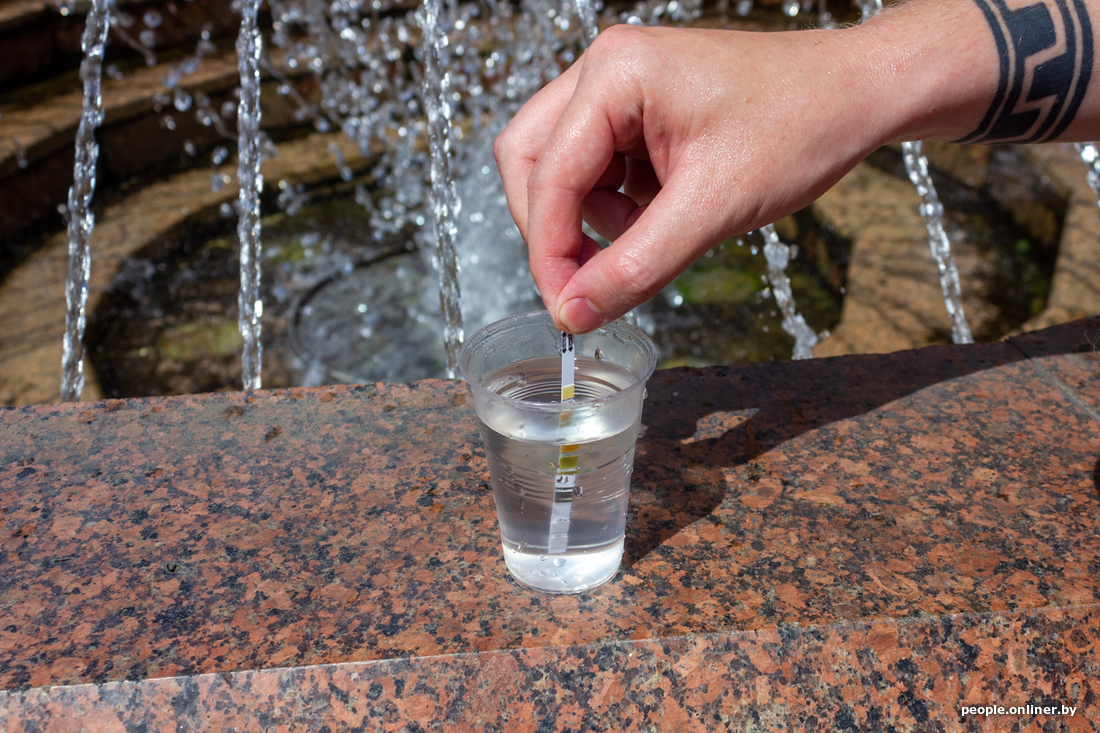 Чем проверяли? Обычной лакмусовой бумажкой. Одна полоска позволяет измерить уровень кислотности, общую жесткость, содержание нитритов, нитратов и хлора. Эти показатели зависят от всего и вся, и не факт, что, взяв пробу в одном и том же фонтане утром и вечером, вы сможете получить одинаковые результаты.