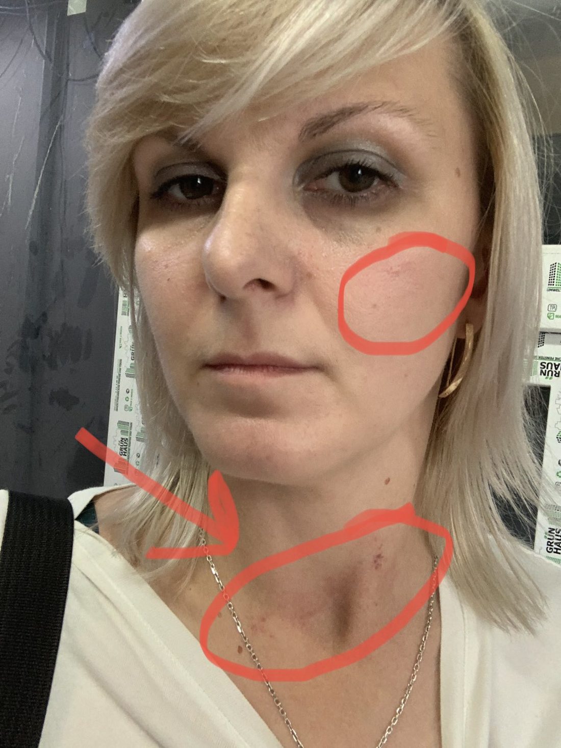 Перед станцией «Площадь Якуба Коласа» пассажиры нажали кнопку вызова машиниста. На станции зашли сотрудники метрополитена, мы с ними поговорили и вышли из поезда. Там вызвали милицию. Поехали в РОВД, и, угадайте что, — эта женщина написала на меня заявление. Якобы ребенок ее обижал, невоспитанный и не уступил ей место, а просила она его культурно. Нас отправили снимать побои — у меня были небольшие следы на шее и вырван клок волос, у нее — следы на руках. Я подала встречное заявление, сейчас идет разбирательство.