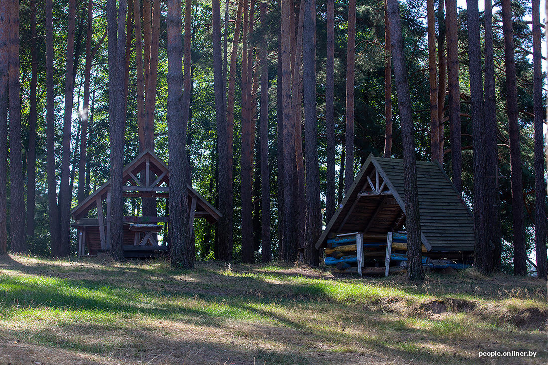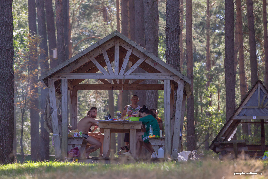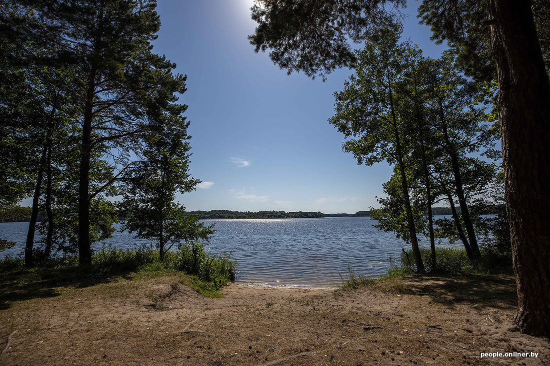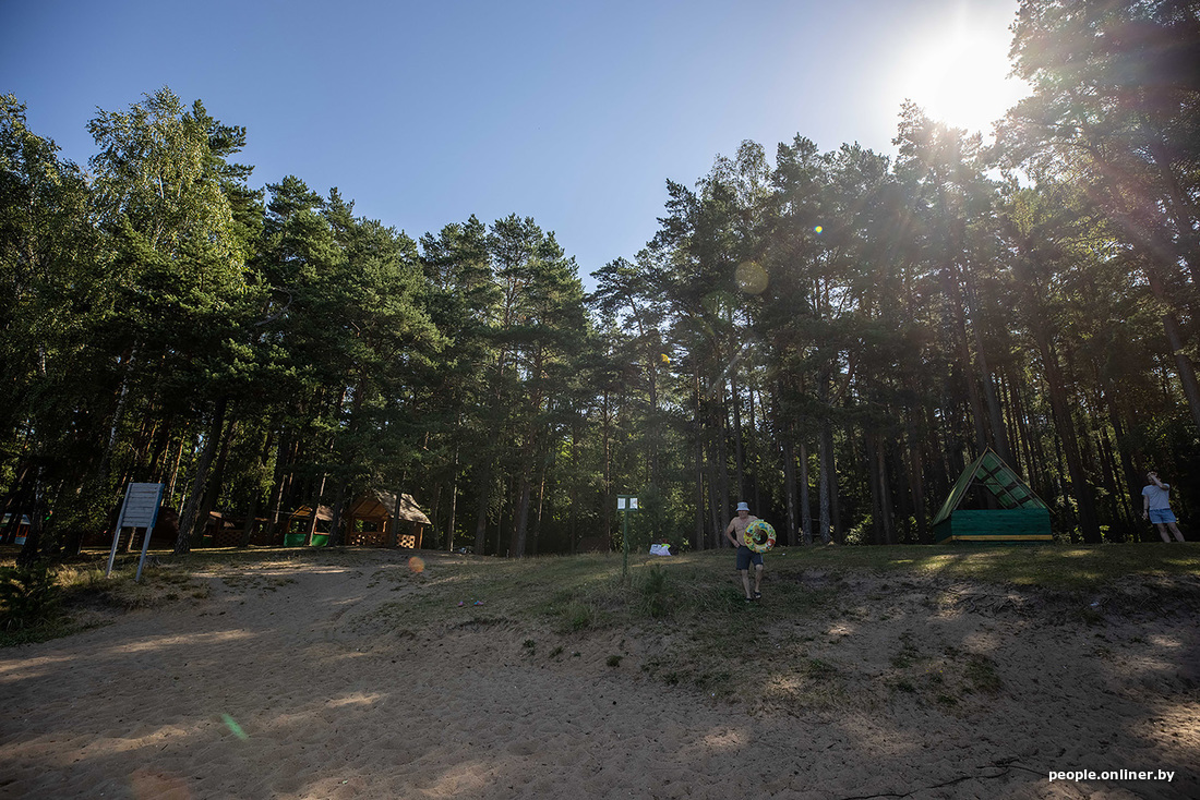 В этой части озера Селява находится и пляж с привезенным с Финского залива песком. Это не какой-то там пятачок с кучей туристов, разместиться можно где угодно вдоль берега. Из удобств — беседки, туалет и парковка. Мангалов и дров нет. Люди делают кострище самостоятельно и топят углем. Также тут действует запрет на громкую музыку после одиннадцати вечера — должно быть тихо.