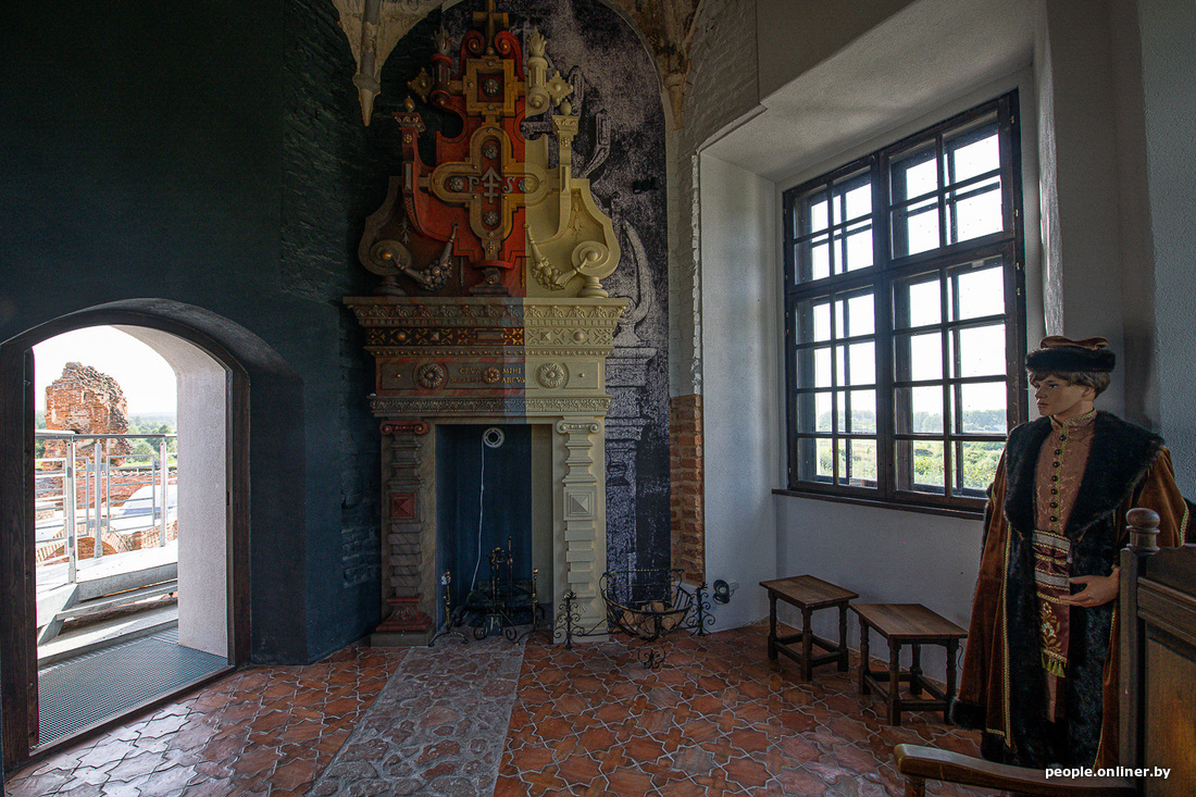 У параўнанні з тым, што бачыў і пра што пісаў Караткевіч, замак змяніўся. На ягонай тэрыторыі ўжо не першы год адбываецца кансервацыя, спецыялісты імкнуцца захаваць часткі замка, а летась у адзінай уратаванай вежы адкрылі экспазіцыю. Пачынаецца яна пад зямлёй — у яйкападобнай цямніцы, дзе калісьці корпаўся сам Караткевіч, і працягваецца на наступных ярусах.