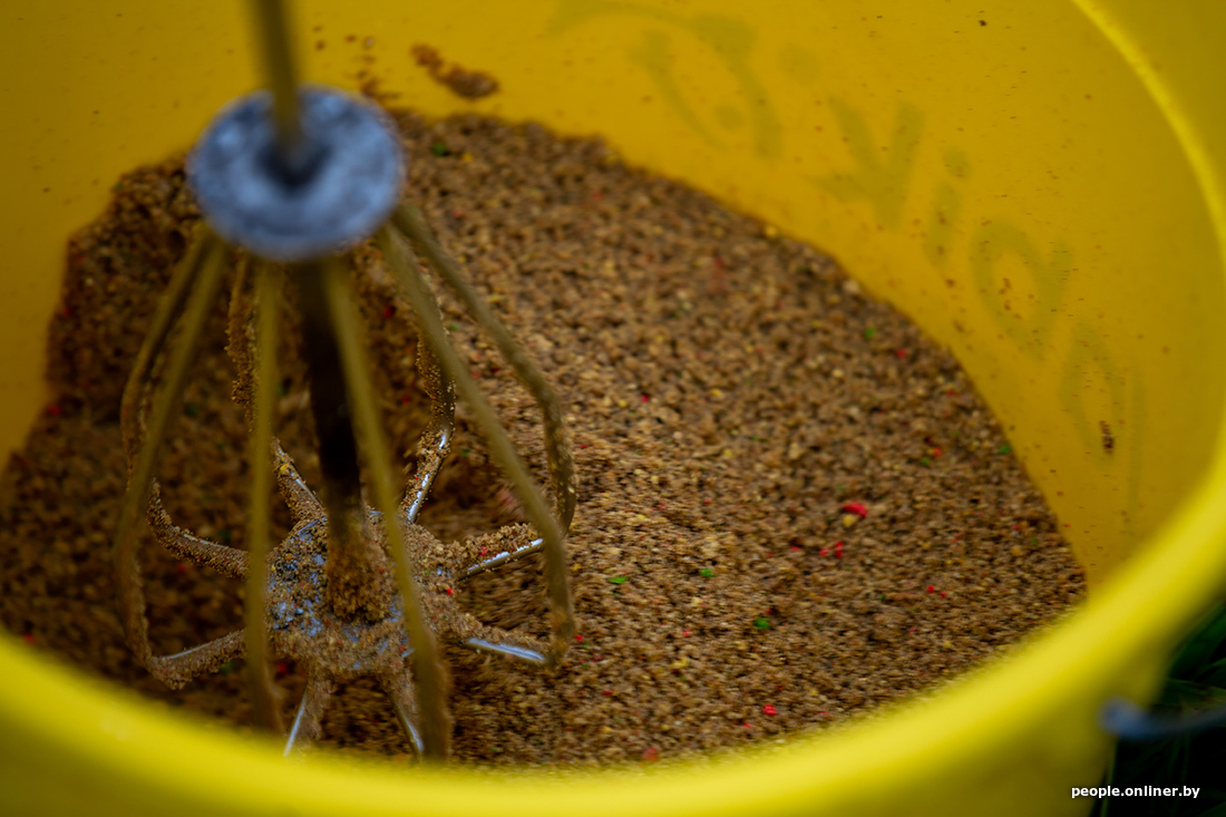 Не теряя времени, Оксана раскладывает фидер и замешивает прикормку. Дело это непростое, девушка орудует шуруповертом с насадкой, как миксером. Полведра прикормки и получается. Затем она привязывает к леске «поводок» ловким рыболовным узлом, крепит любимую кормушку — на нее у Оксаны всегда ловится. Проходит час, два, а рыбы нет. Но ее мы вам все же покажем.